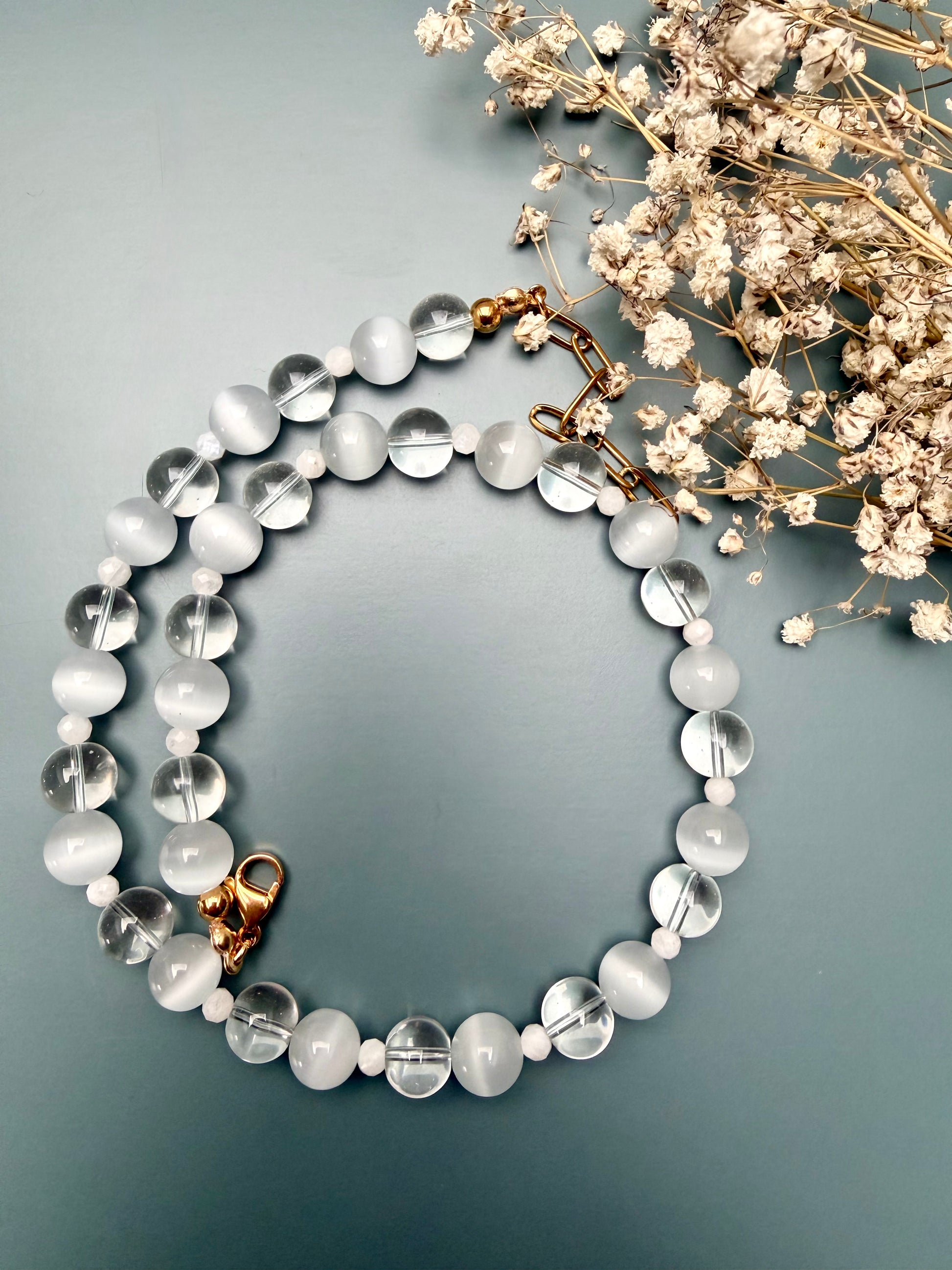 Crystal Moon – Necklace with rock crystal, moonstone & cat's eye – handmade