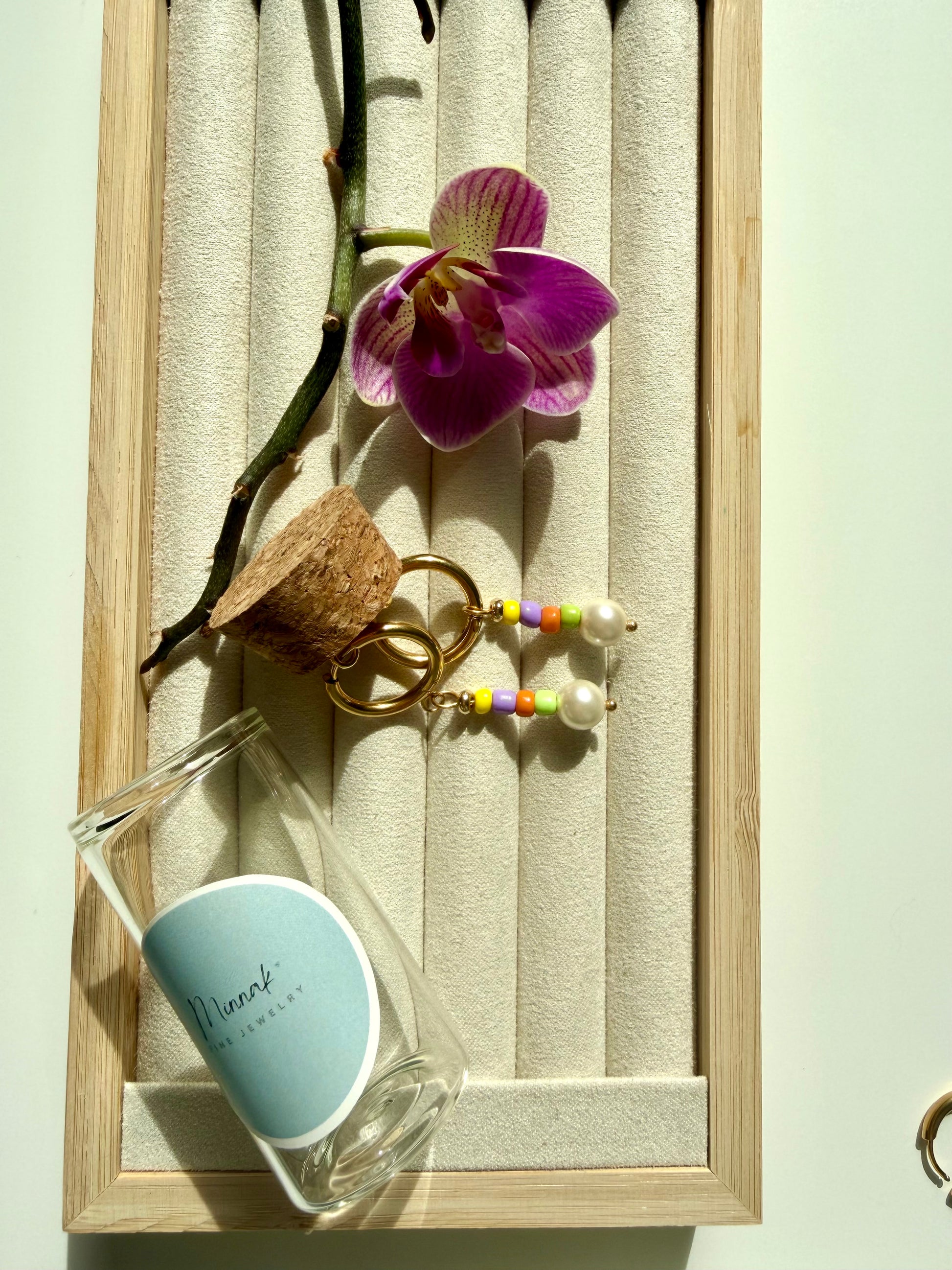 Die Ohrringe „Lumi Pop“ vereinen verspielte Farben mit einem cleanen, modernen Design. Kleine, bunte Glasperlen treffen auf eine größere, glänzende Perle und sorgen für einen frischen, lebendigen Look. Die Kombination aus farbenfrohen Akzenten und warmem Gold macht diese Ohrringe zu einem echten Hingucker – perfekt für den Alltag oder als Highlight zu schlichten Outfits.