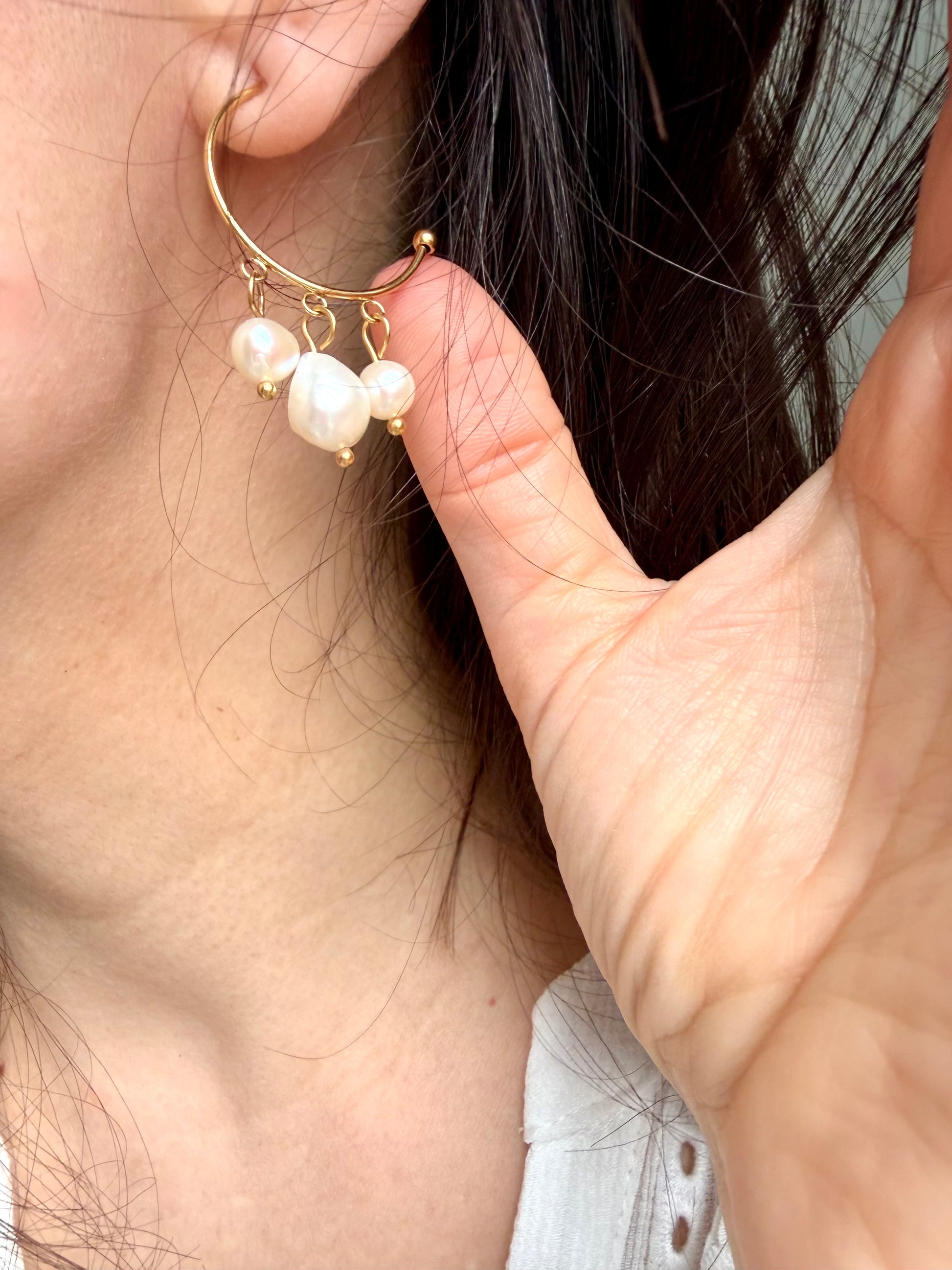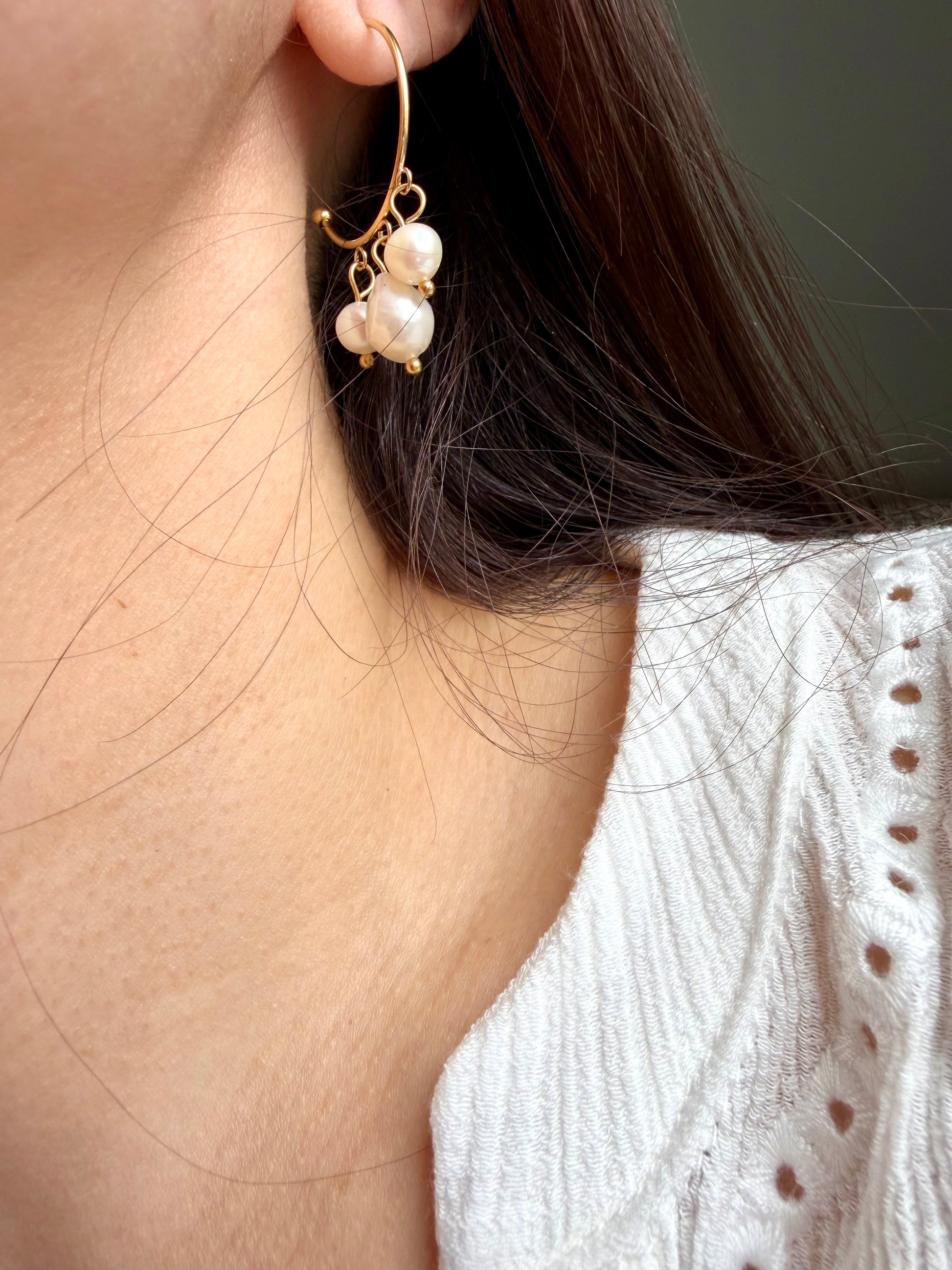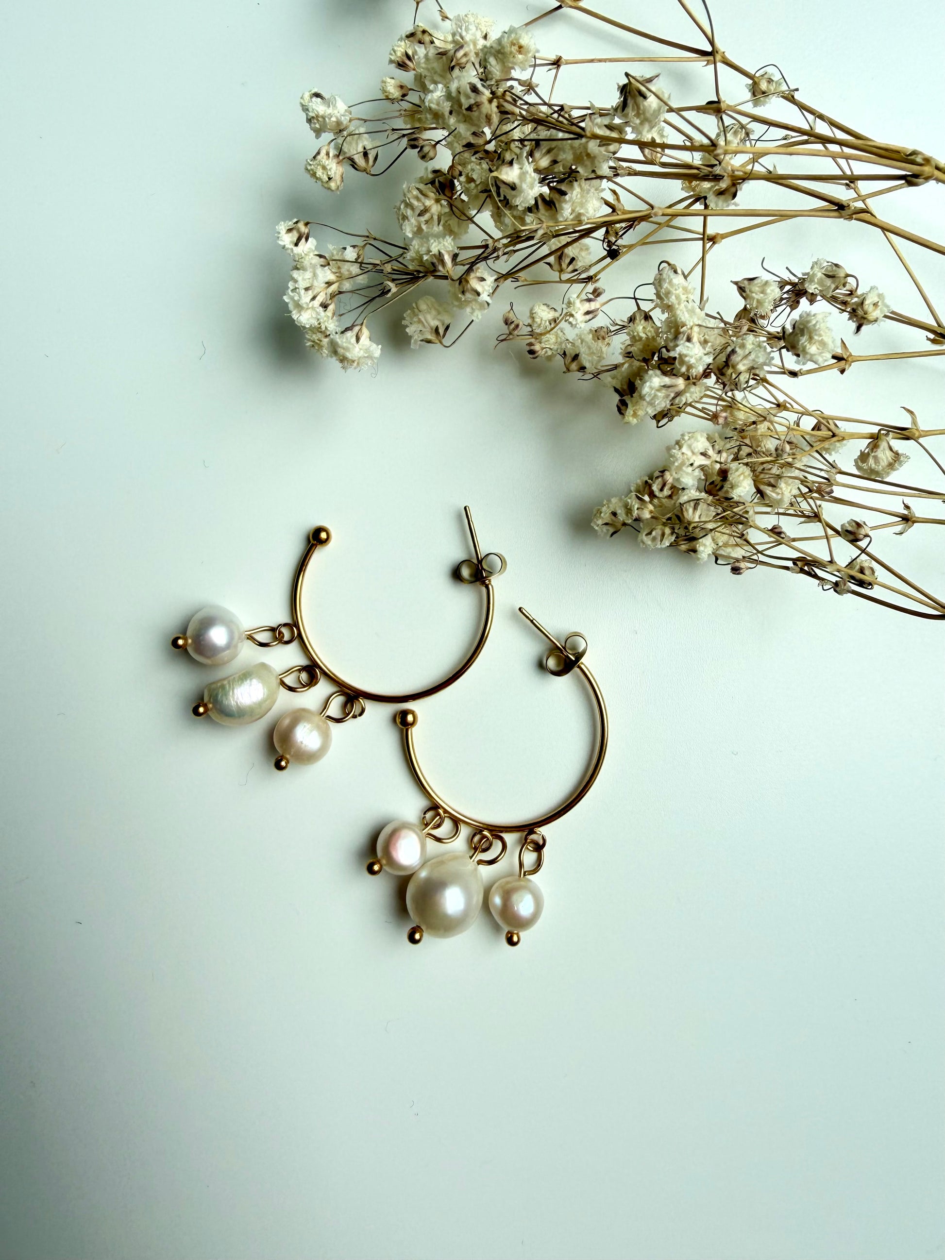 Perla Flow – Creolen mit Süßwasserperlen & goldenen Details – handgefertigt
