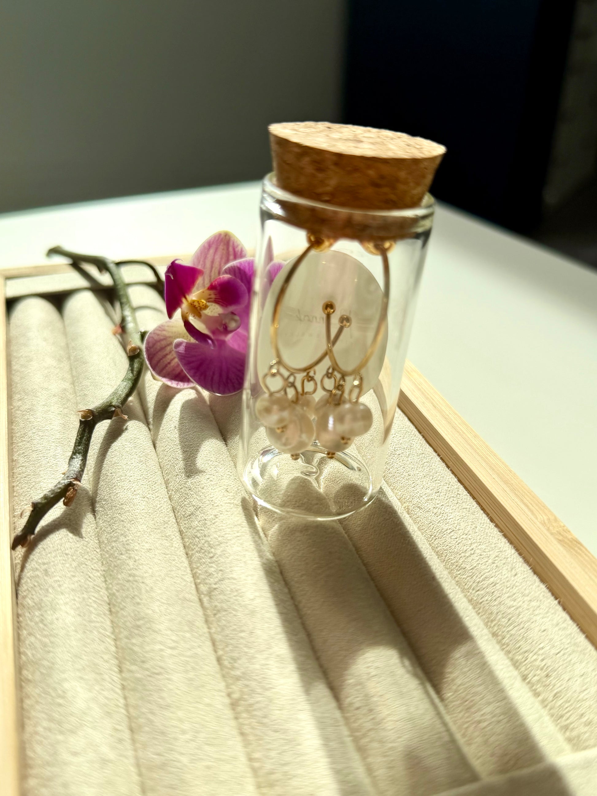 Die Ohrringe „Perla Flow“ vereinen zeitlose Eleganz mit einem modernen, fließenden Design. Zarte Süßwasserperlen hängen locker an goldenen Creolen und bewegen sich sanft mit jeder Bewegung. Die Kombination aus klassischer Perle und klarer Form wirkt leicht, edel und gleichzeitig besonders – perfekt für Alltag und besondere Anlässe.