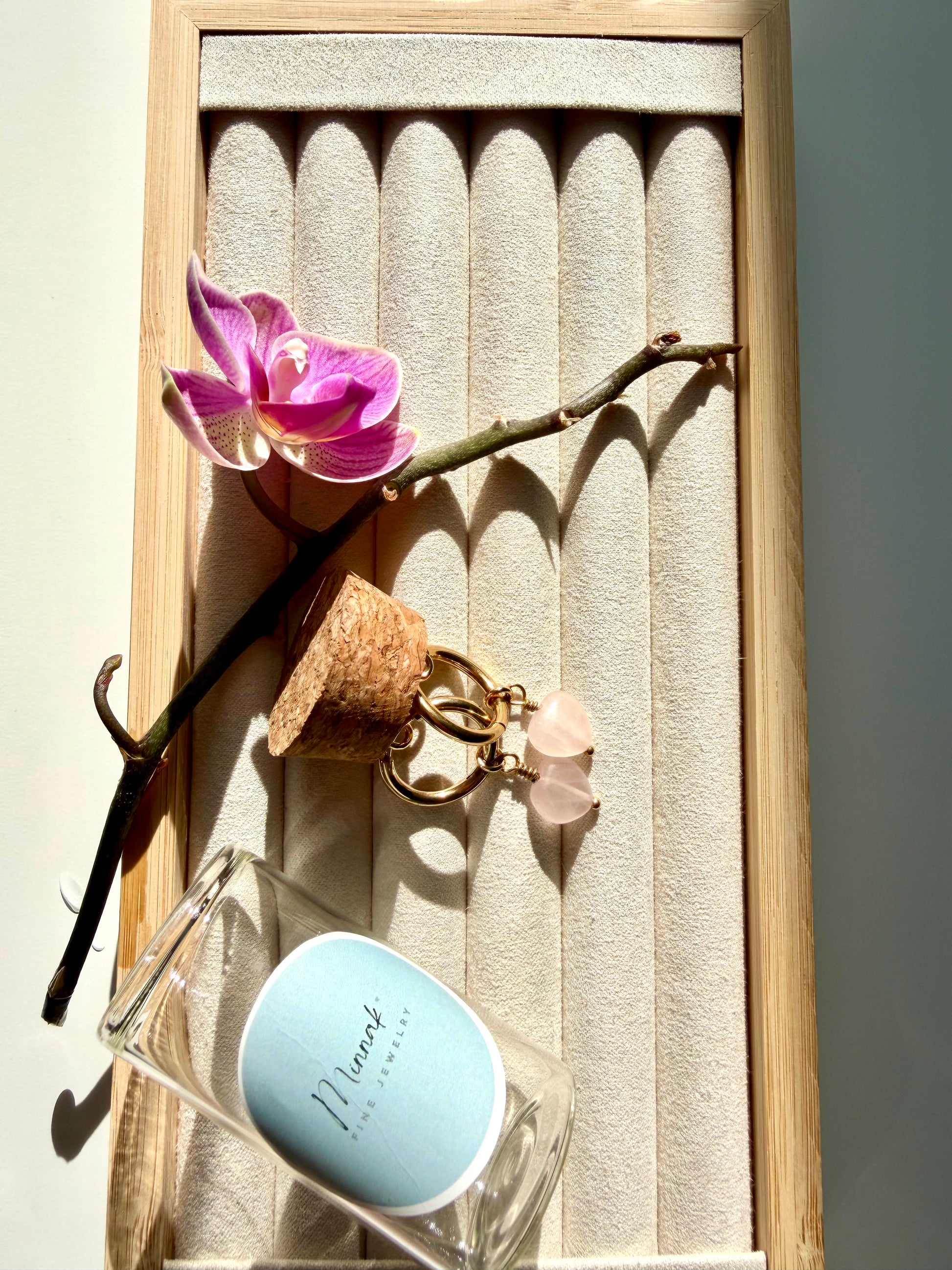 Rose quartz, known as the stone of love, lends the Heart of Rose earrings a special energetic depth. Each stone is carefully selected and hand-cut, making every pair unique.