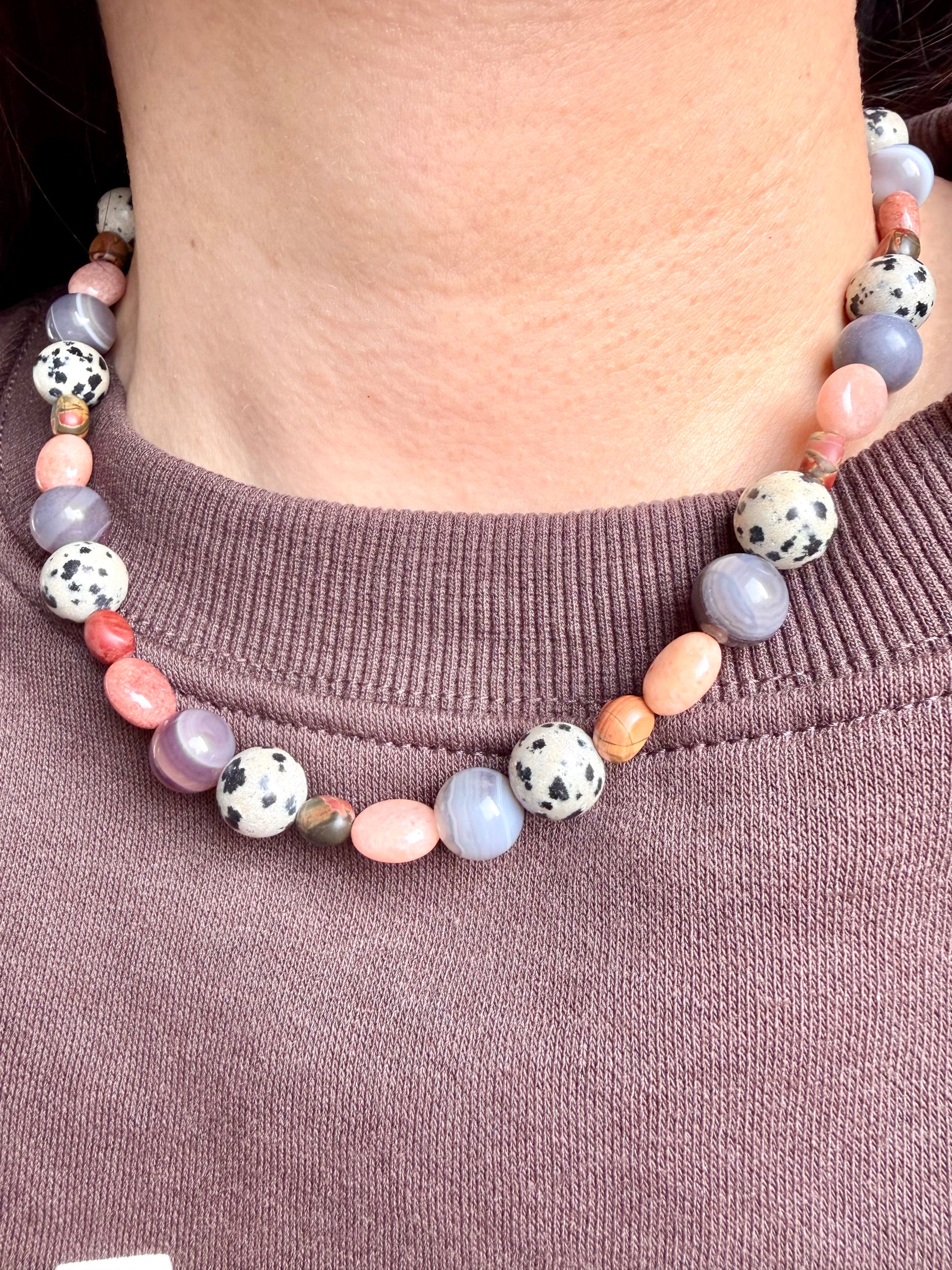 Terra Confetti – Edelstein Kette mit Picasso Jaspis, Dalmatiner Jaspis, Opal & Achat – handgefertigt