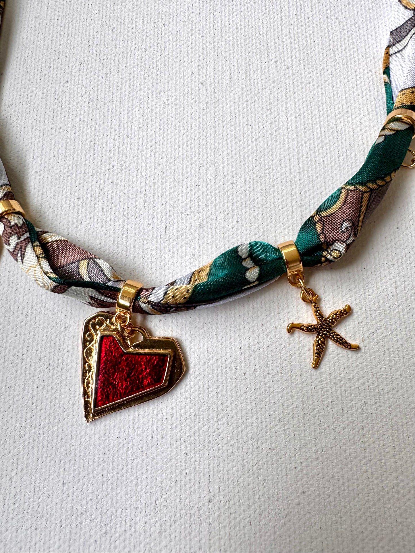 Bandana-Halskette mit Charms aus 18k vergoldetem Edelstahl • Herz-Anhänger, Stern & handbemaltes Porzellanherz