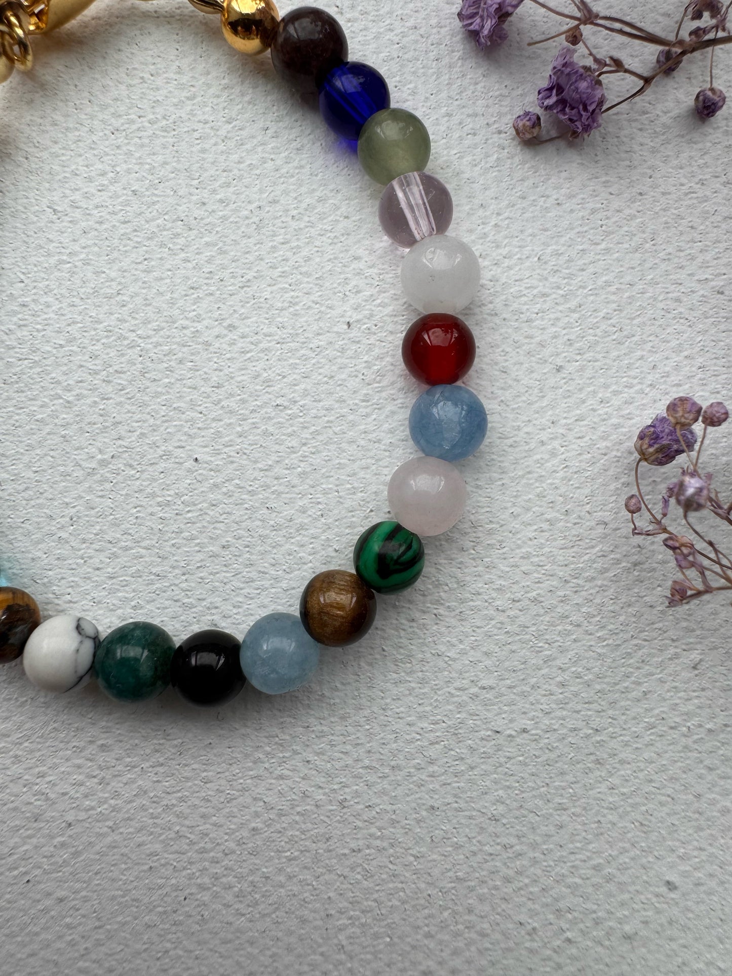 Buntes Edelstein-Armband • 6 mm Perlen • 18k vergoldet