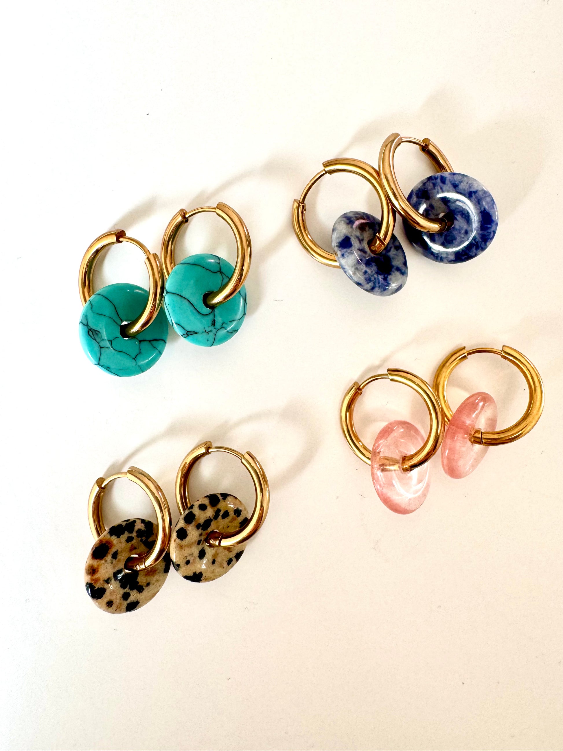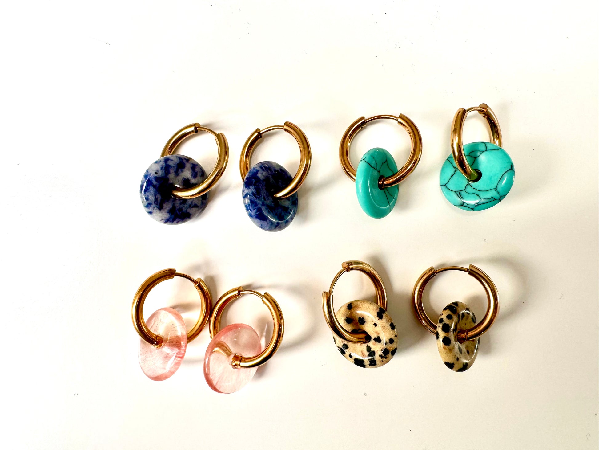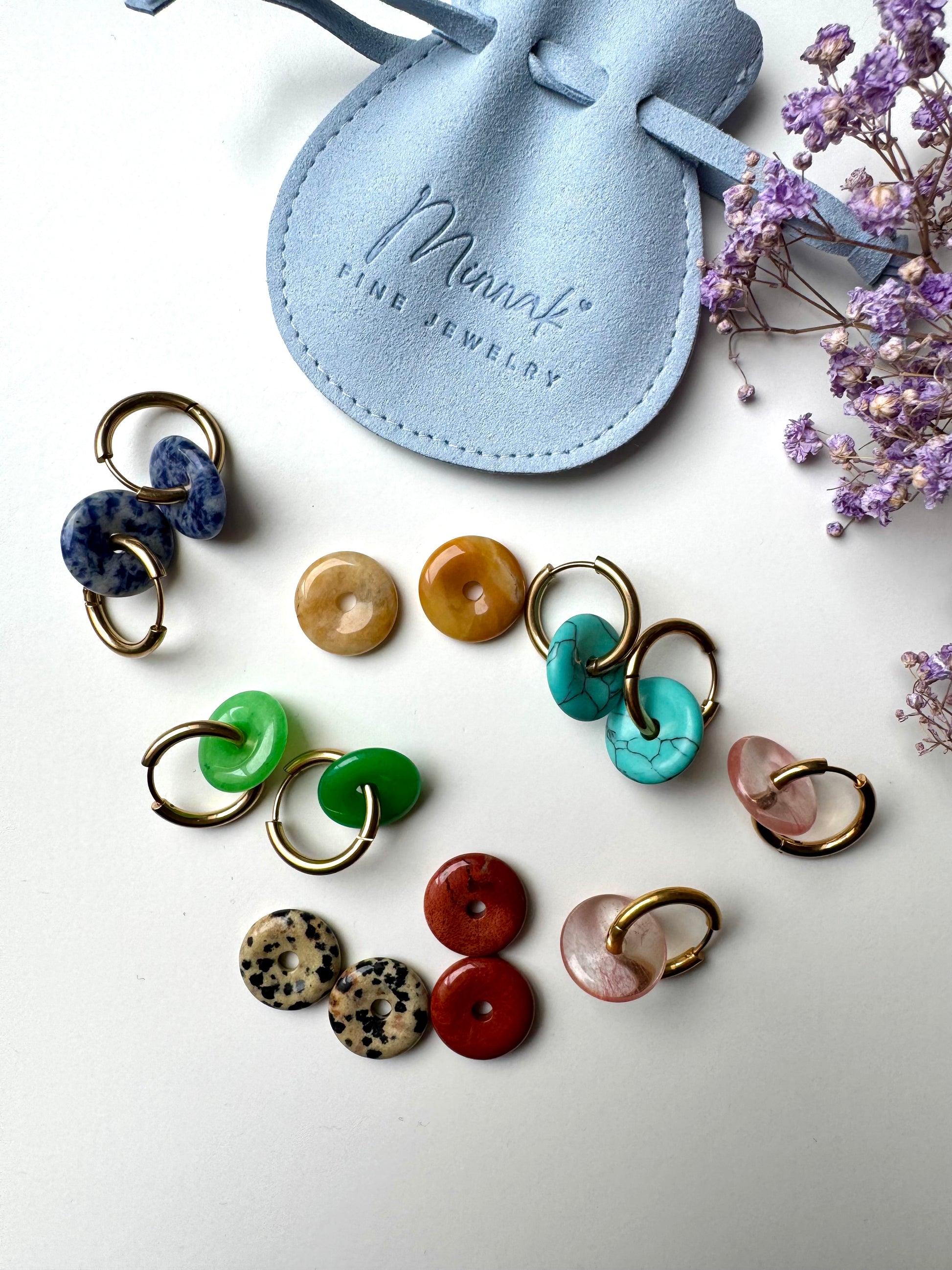 Creolen mit Edelstein-Donuts – Mix aus Natursteinperlen & goldfarbenen Details – handgefertigt