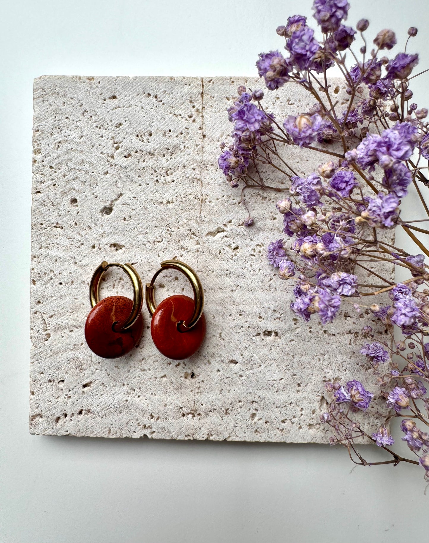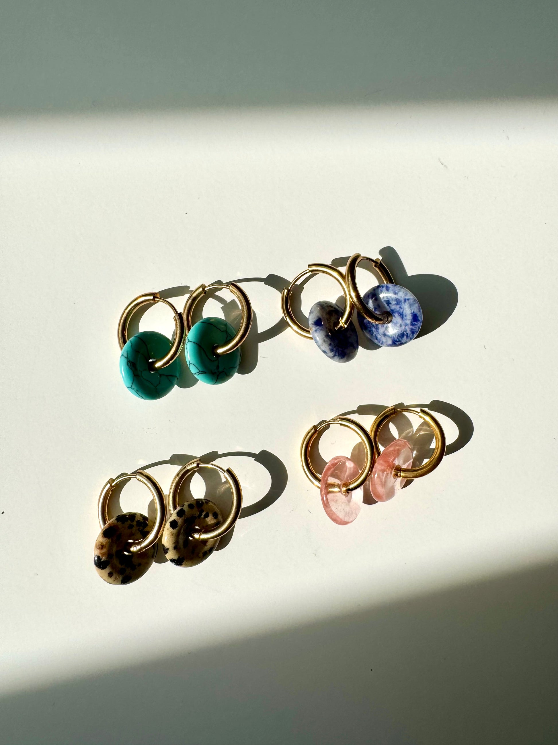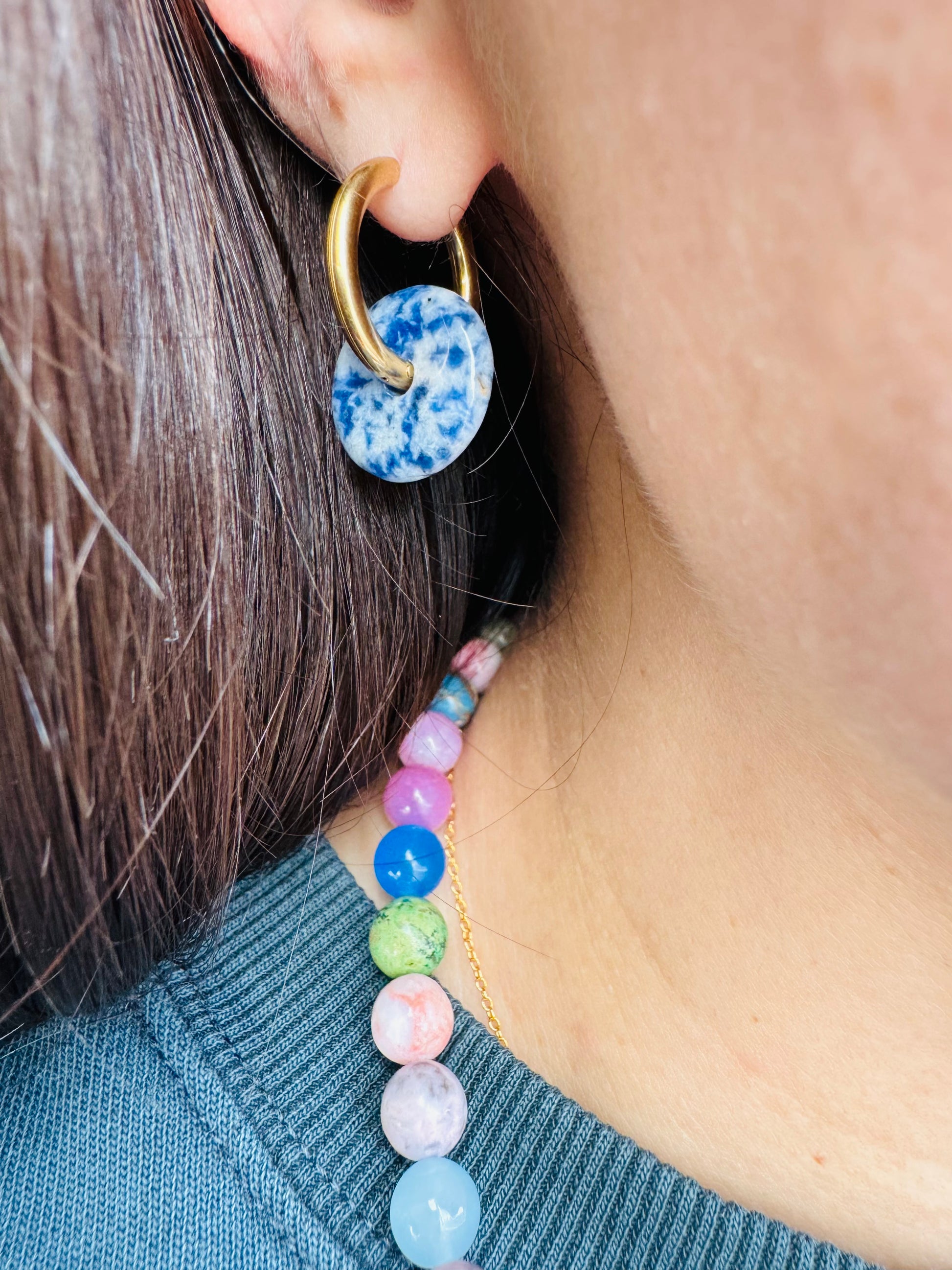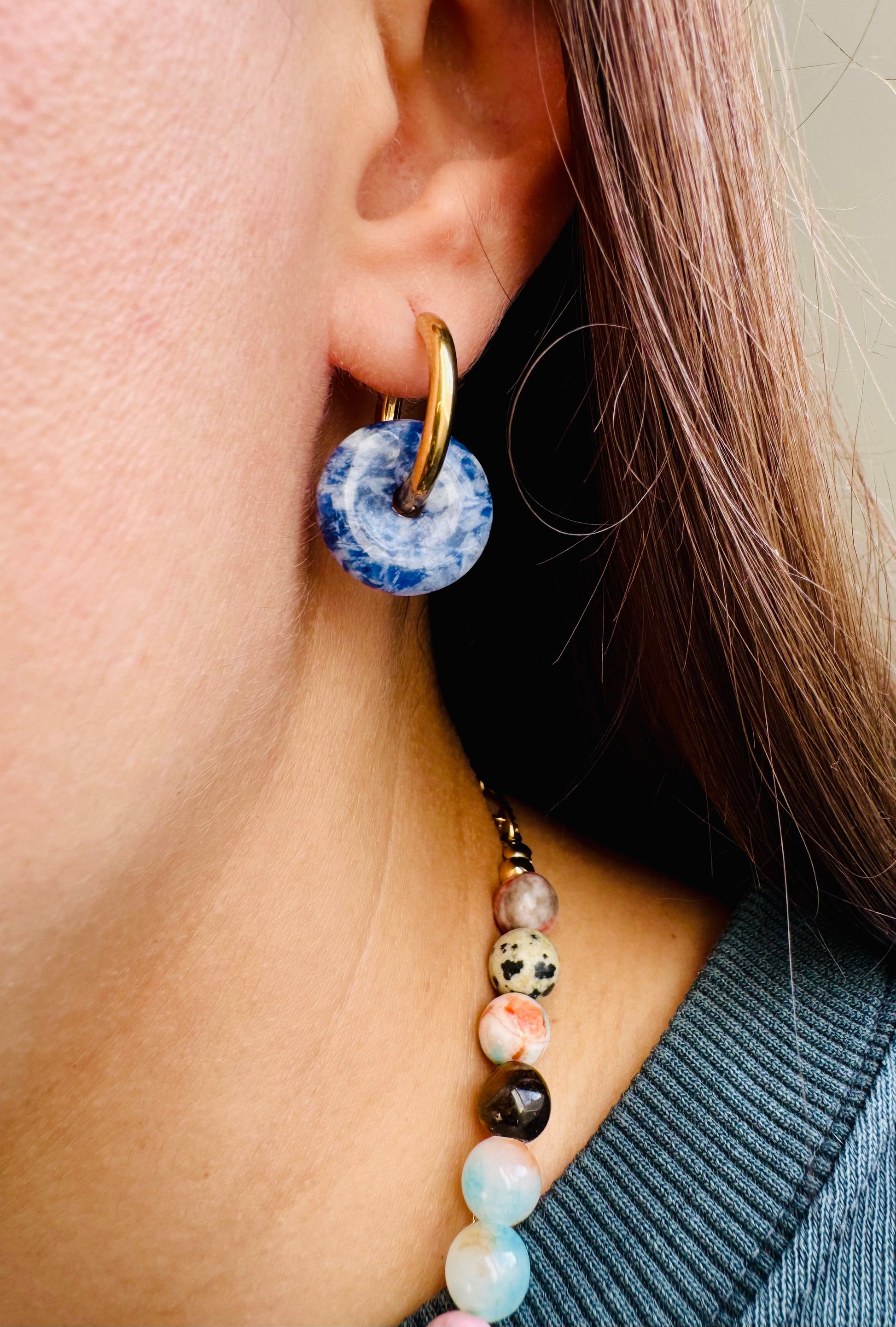 Creolen mit Edelstein-Donuts – Mix aus Natursteinperlen & goldfarbenen Details – handgefertigt