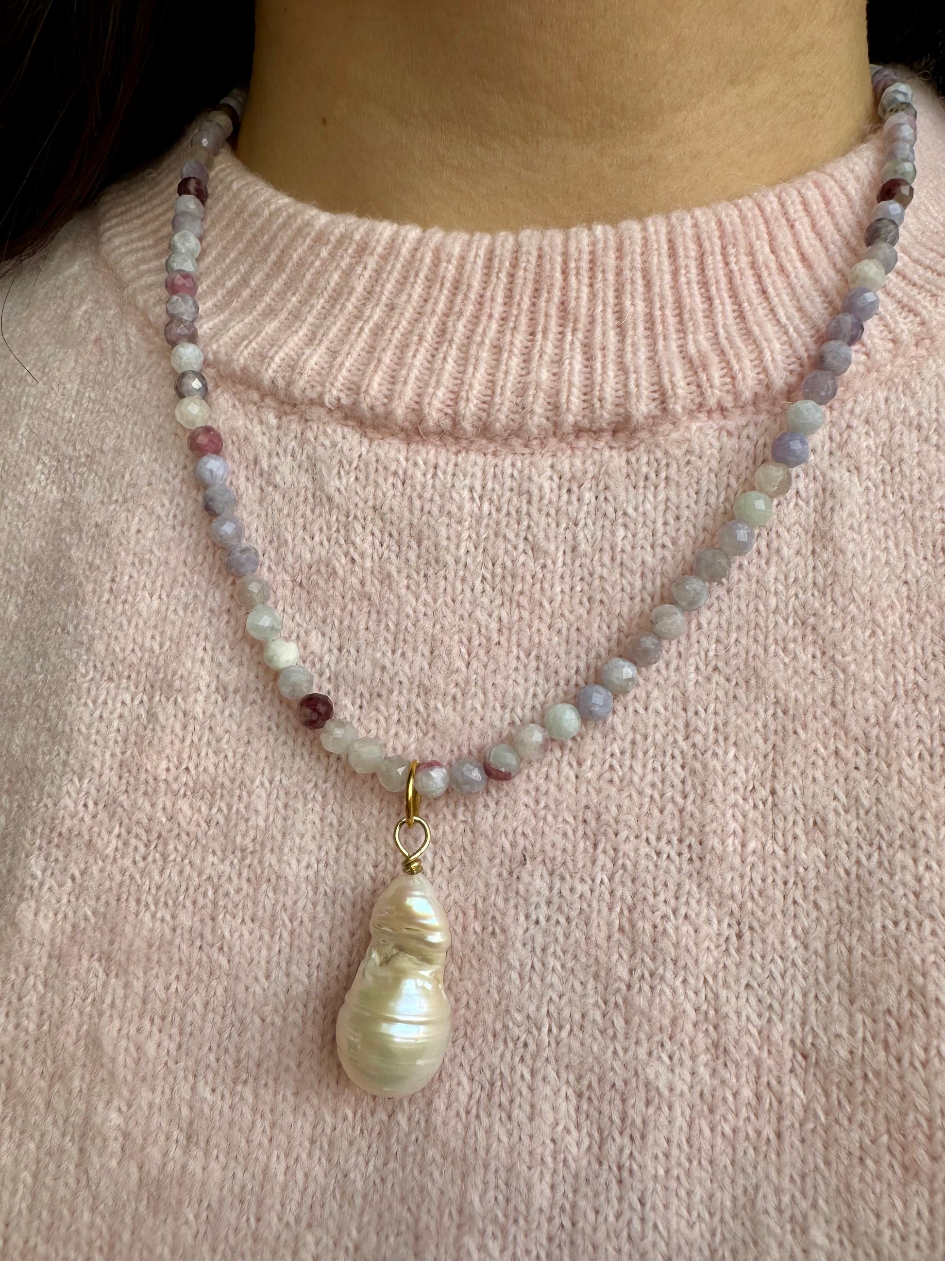 Edelsteinkette in Fliedertönen mit Barockperle
