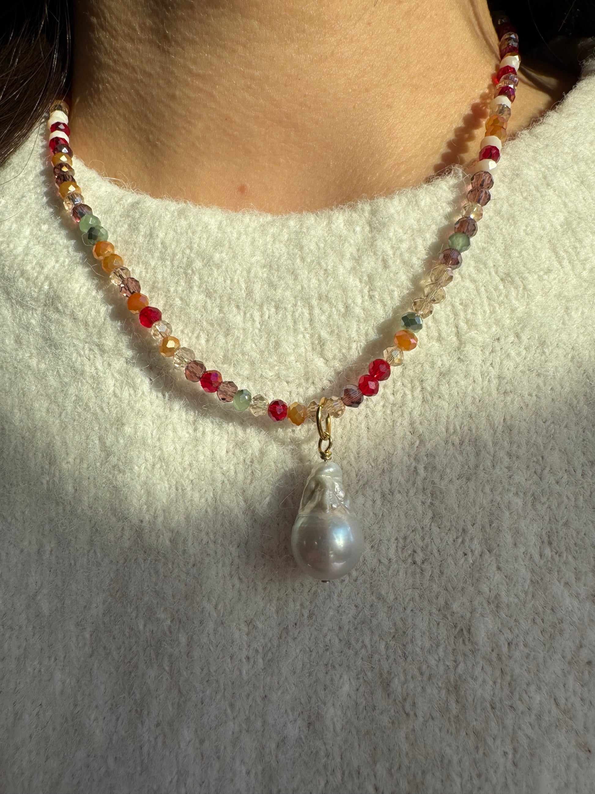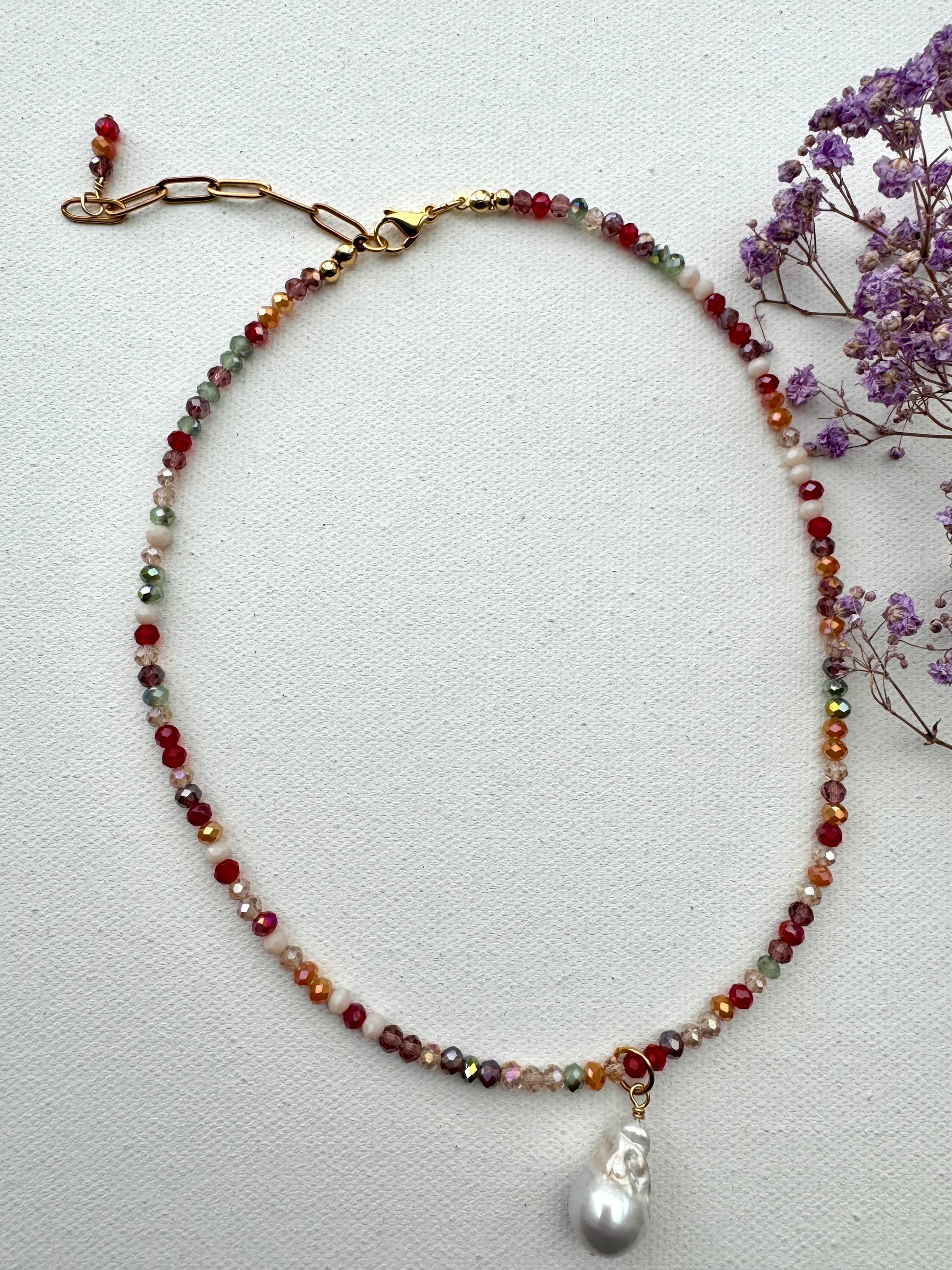 Facettierte Edelstein-Halskette mit Barockperle & goldenen Details