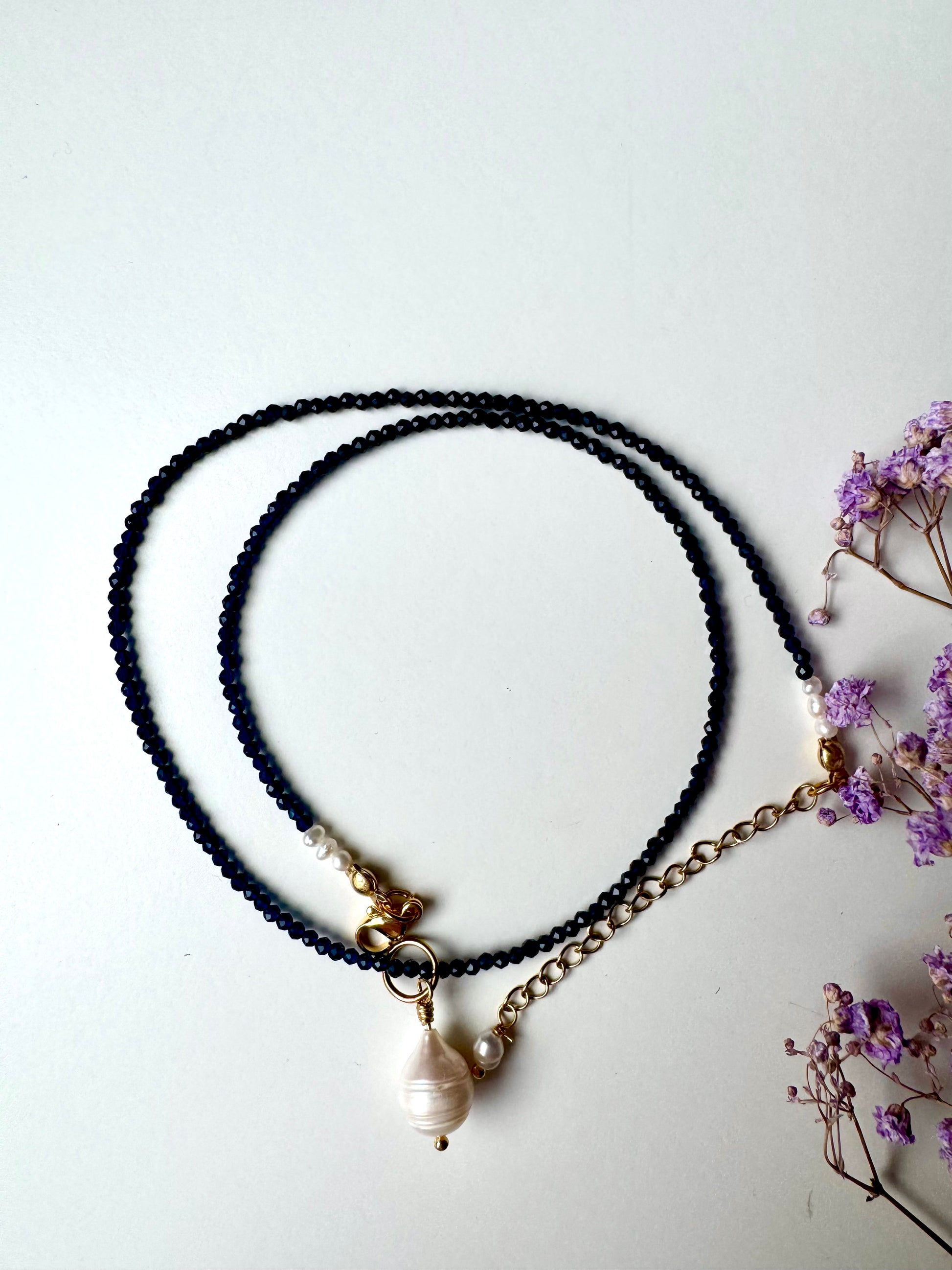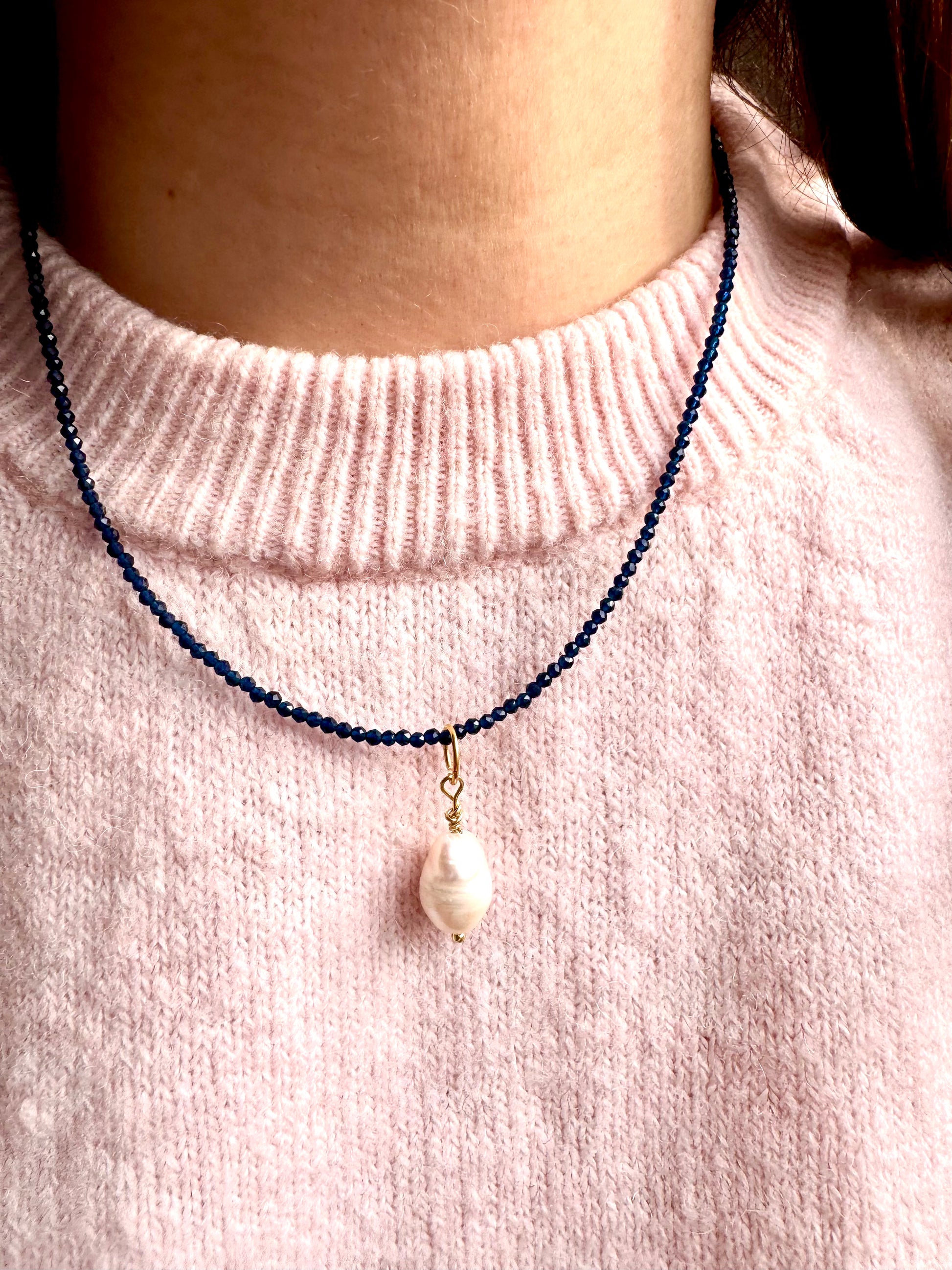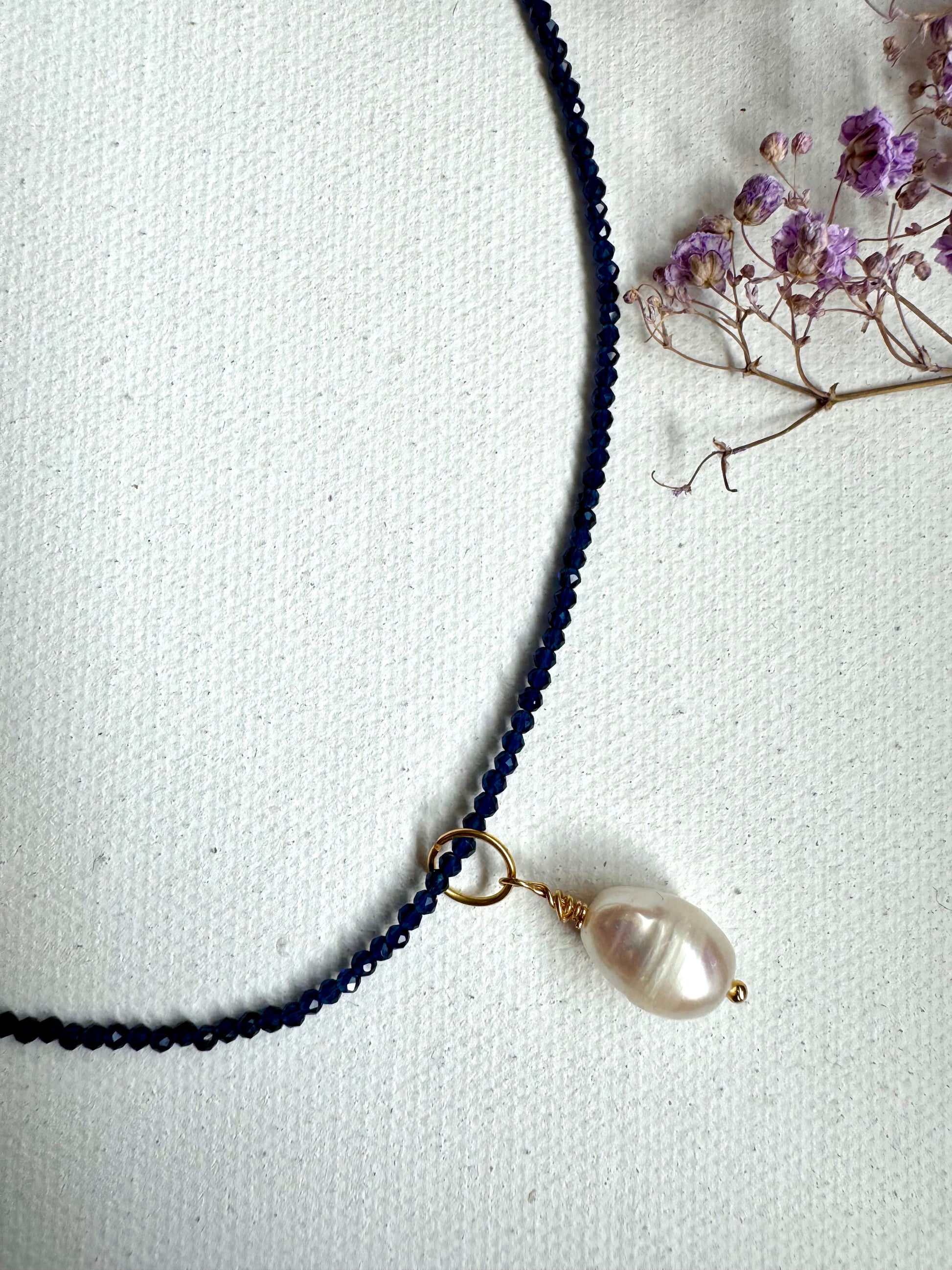 Kristall-Halskette Nachtblau • Barockperle • 18k vergoldet