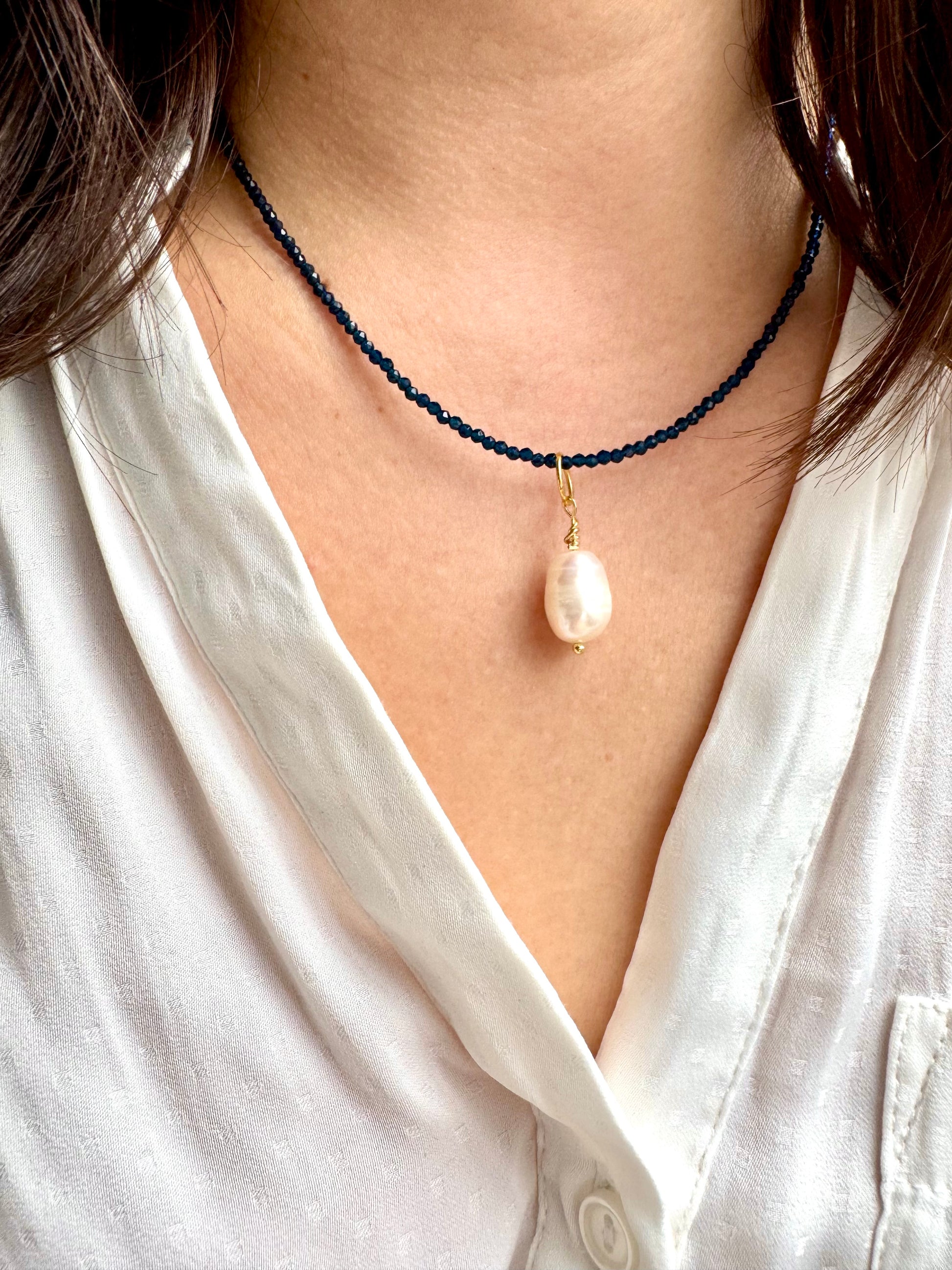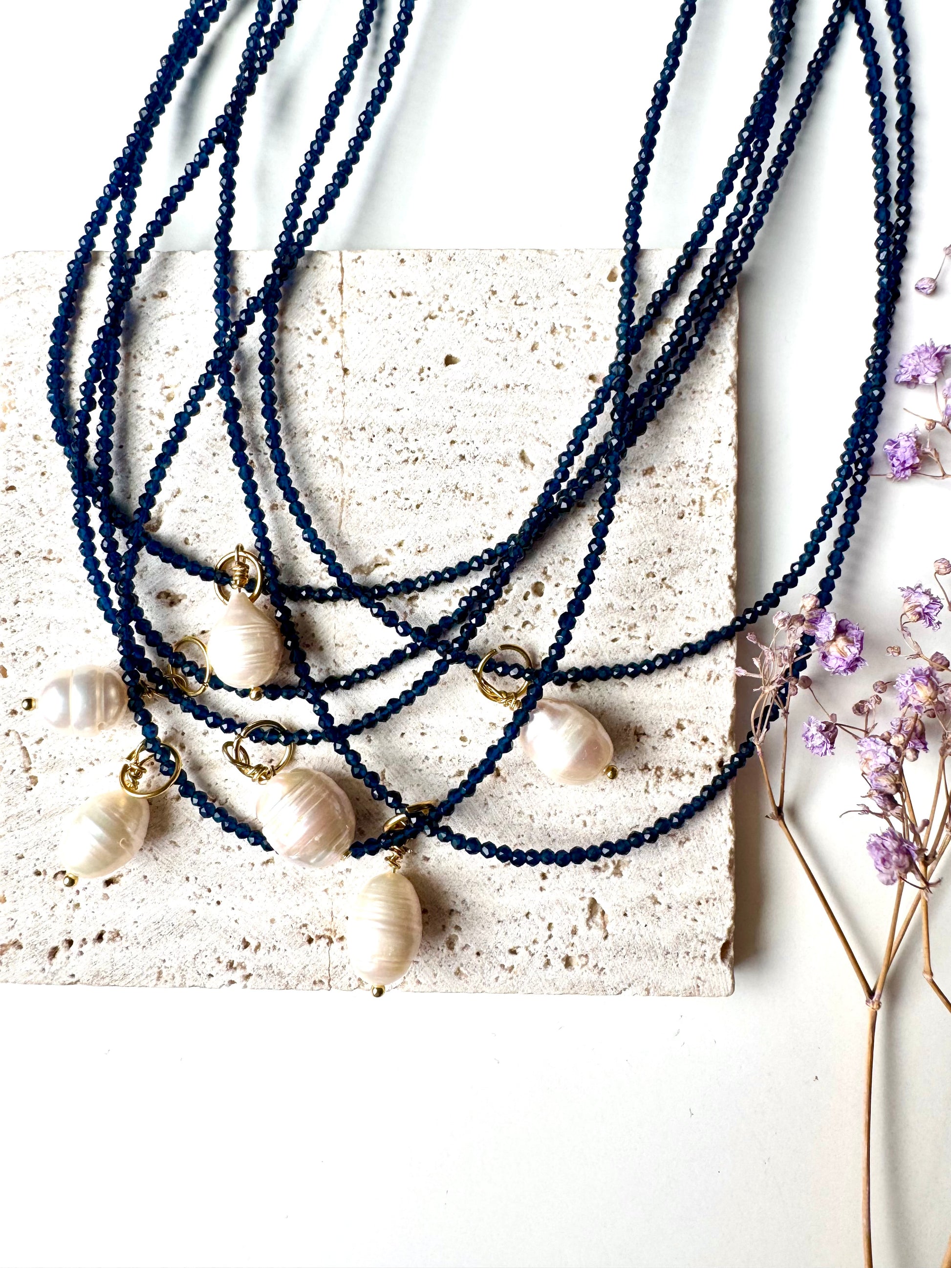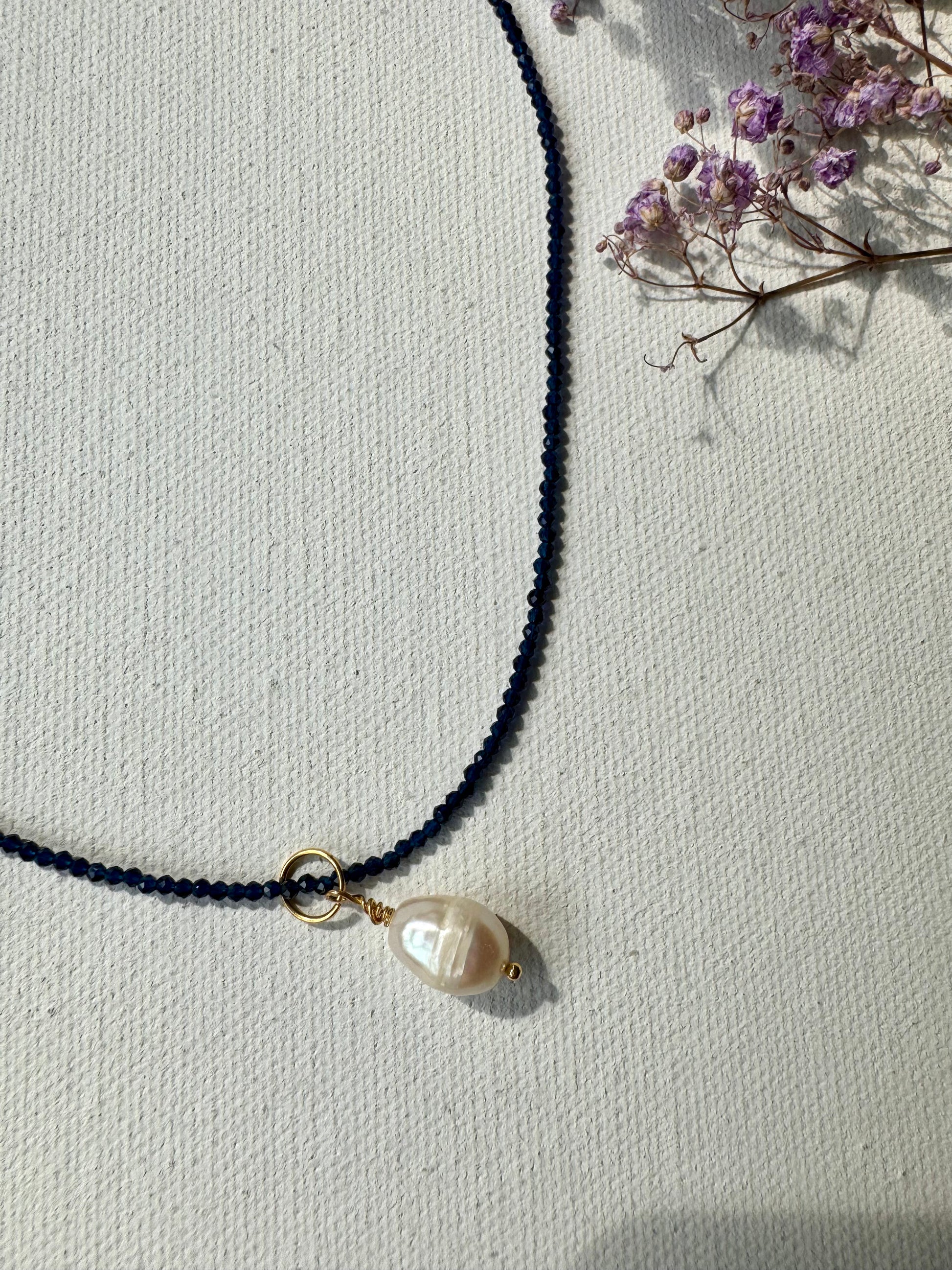 Kristall-Halskette Nachtblau • Barockperle • 18k vergoldet
