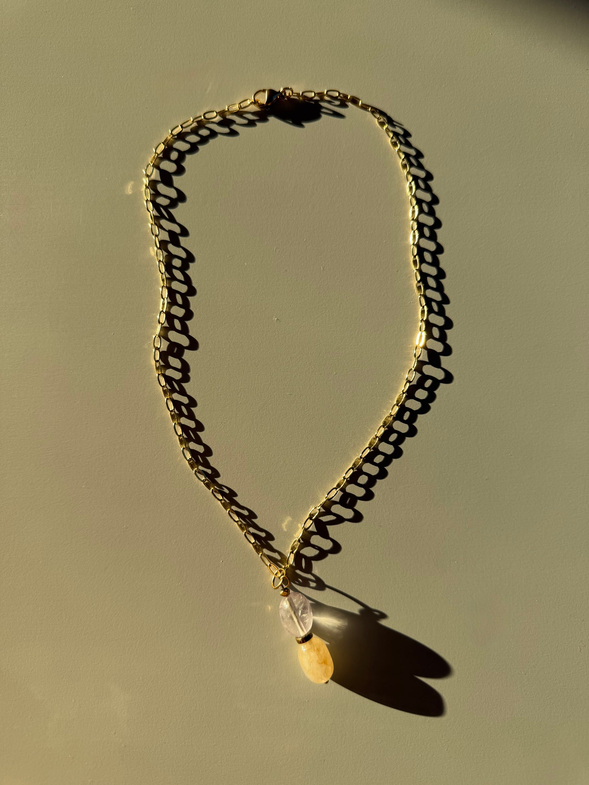 Limited Edition – Halskette mit Naturstein-Anhängern & vergoldeter Gliederkette – handgefertigt