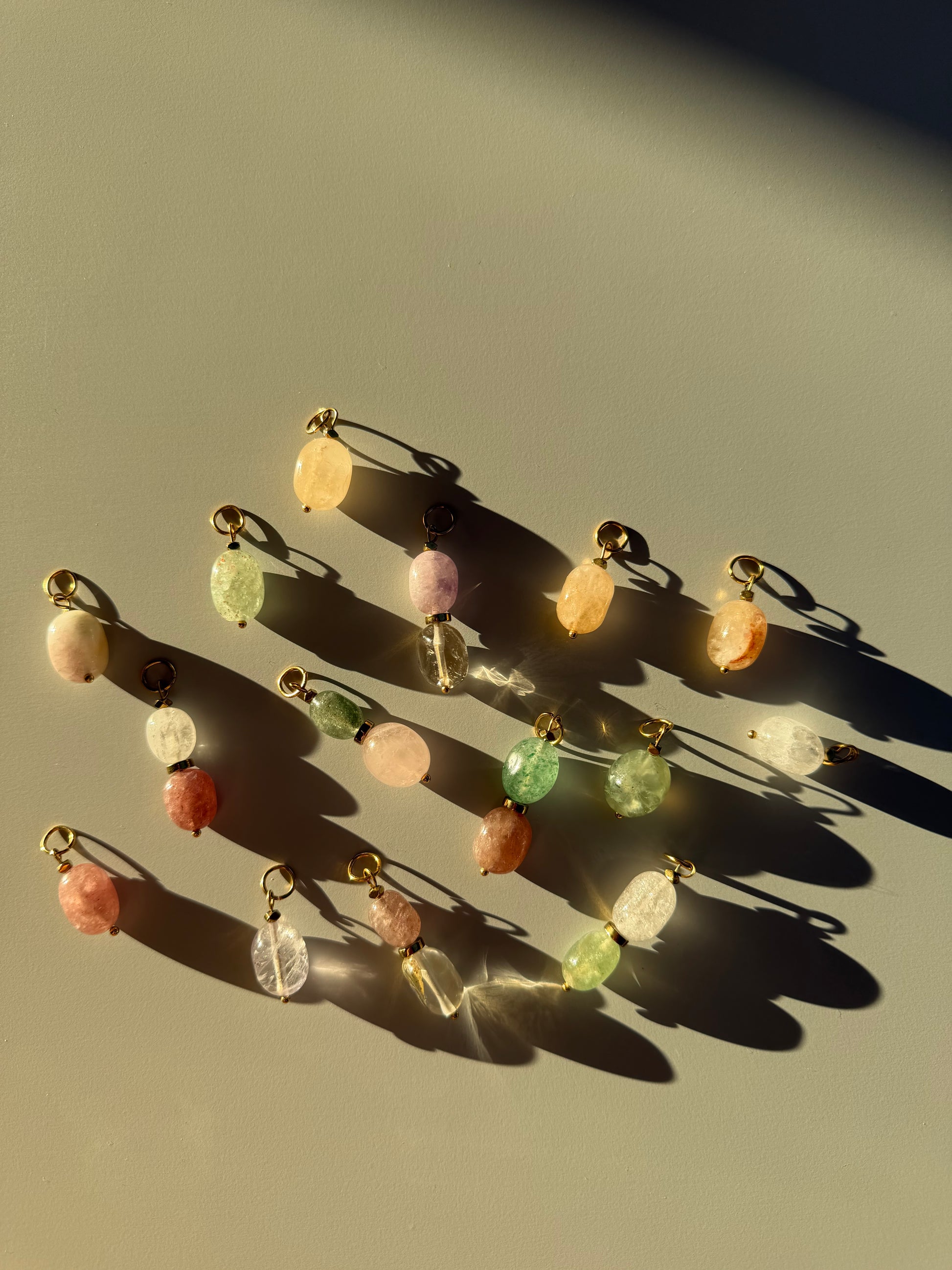 Diese Limited Edition Halskette kombiniert natürliche Edelsteinanhänger mit einer zarten, vergoldeten Gliederkette. Jeder Anhänger besteht – je nach Variante – aus einem einzelnen Naturstein oder einem harmonischen Duo. Die Farbnuancen reichen von sanftem Rosé über Grün und Lavendel bis hin zu klaren, neutralen Tönen. Durch die Mischung aus feinen Steinen und moderner Goldoptik entsteht ein eleganter, zeitloser Look, der sich perfekt für den Alltag oder besondere Anlässe eignet.