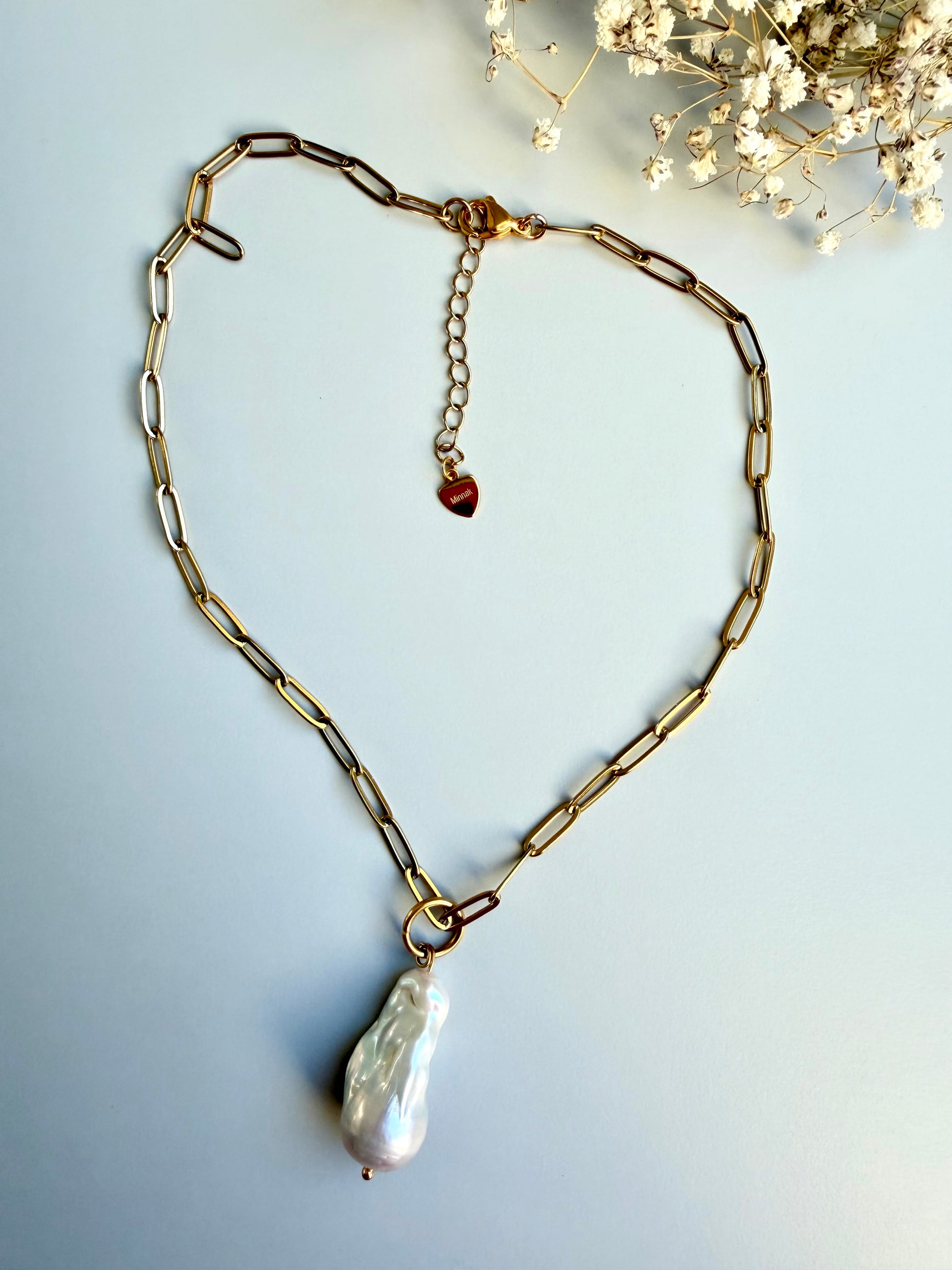 - Material: Große natürliche Barockperle, vergoldete Gliederkette