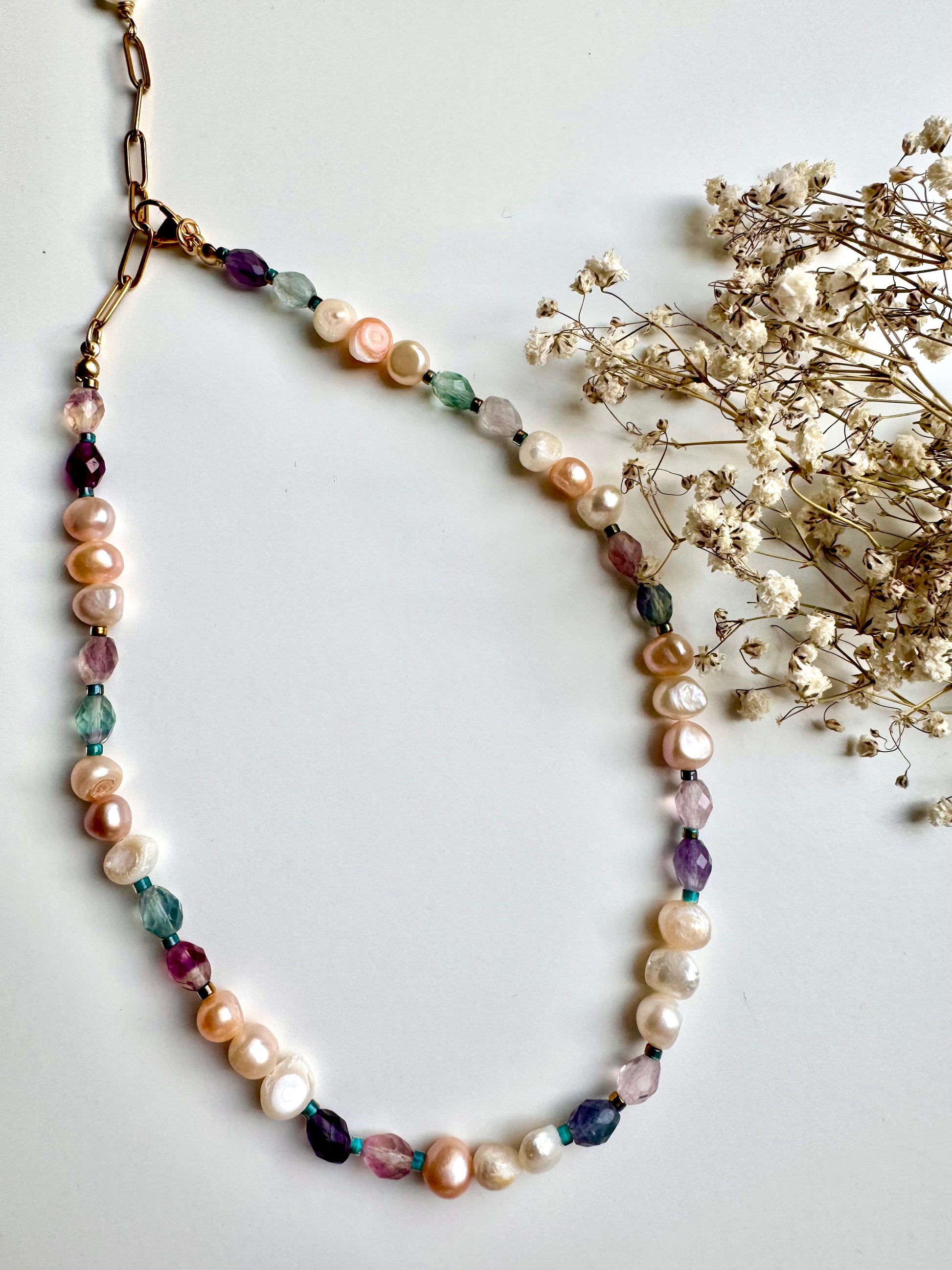 Pearl & Fluorite Harmony Necklace“ – Halskette mit Süßwasserperlen und Fluoritperlen