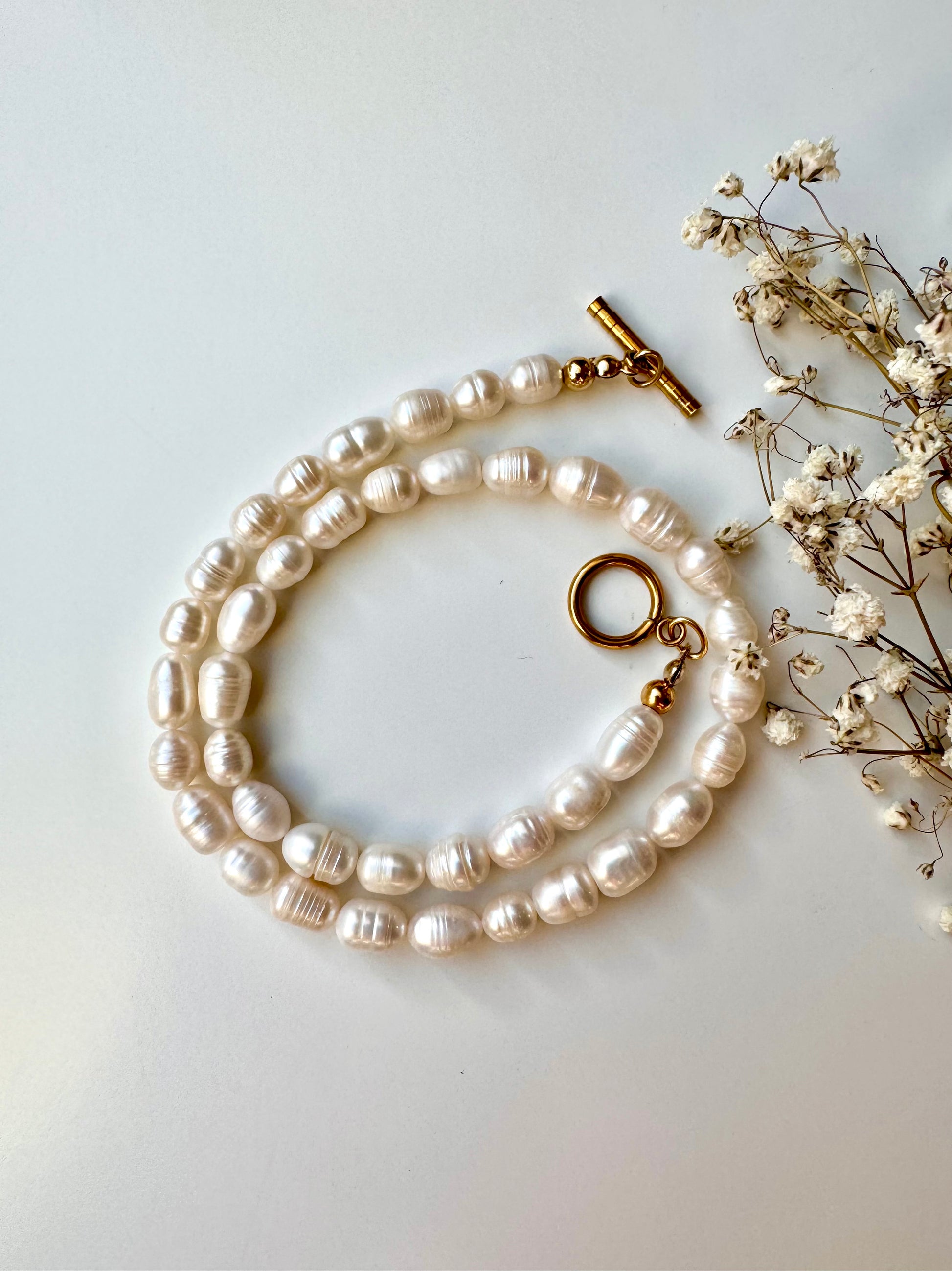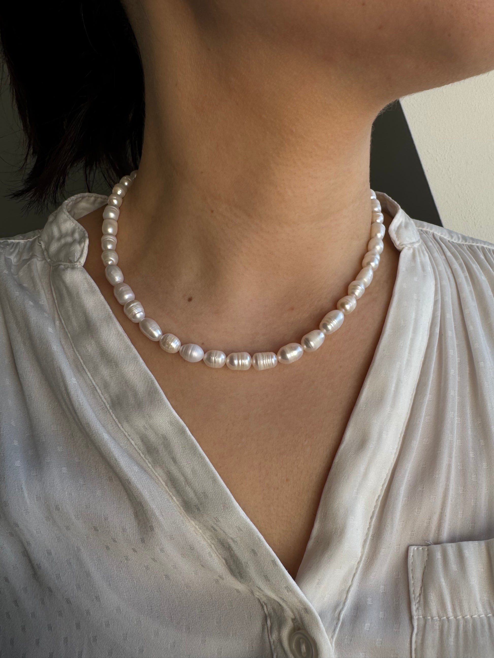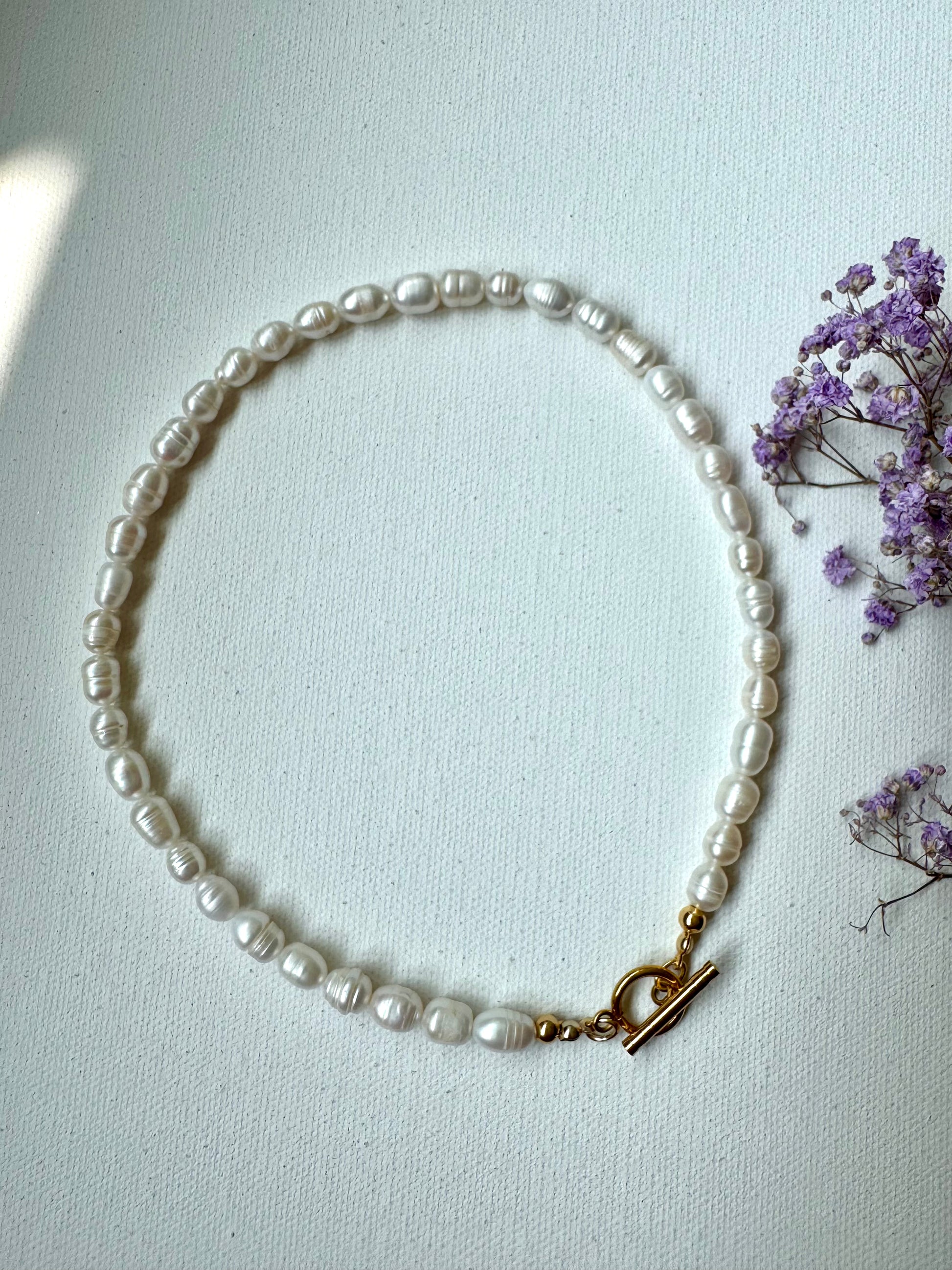 Klassische Perlenkette mit Süßwasserperlen • 18k vergoldeter Knebelverschluss