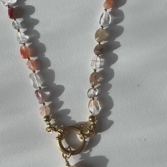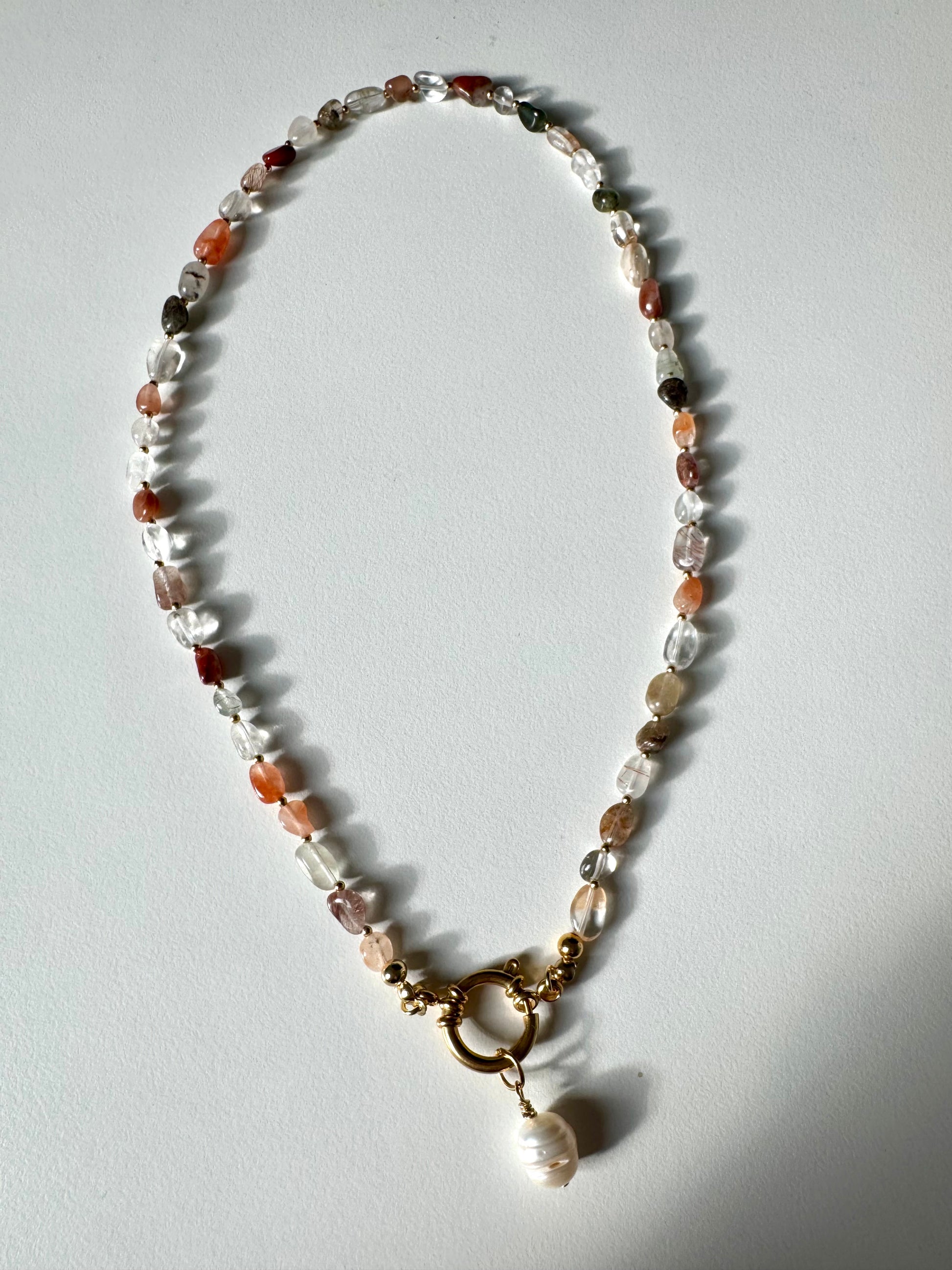 Quarzstein-Kette mit Barockperle & goldenen Details – handgefertigt