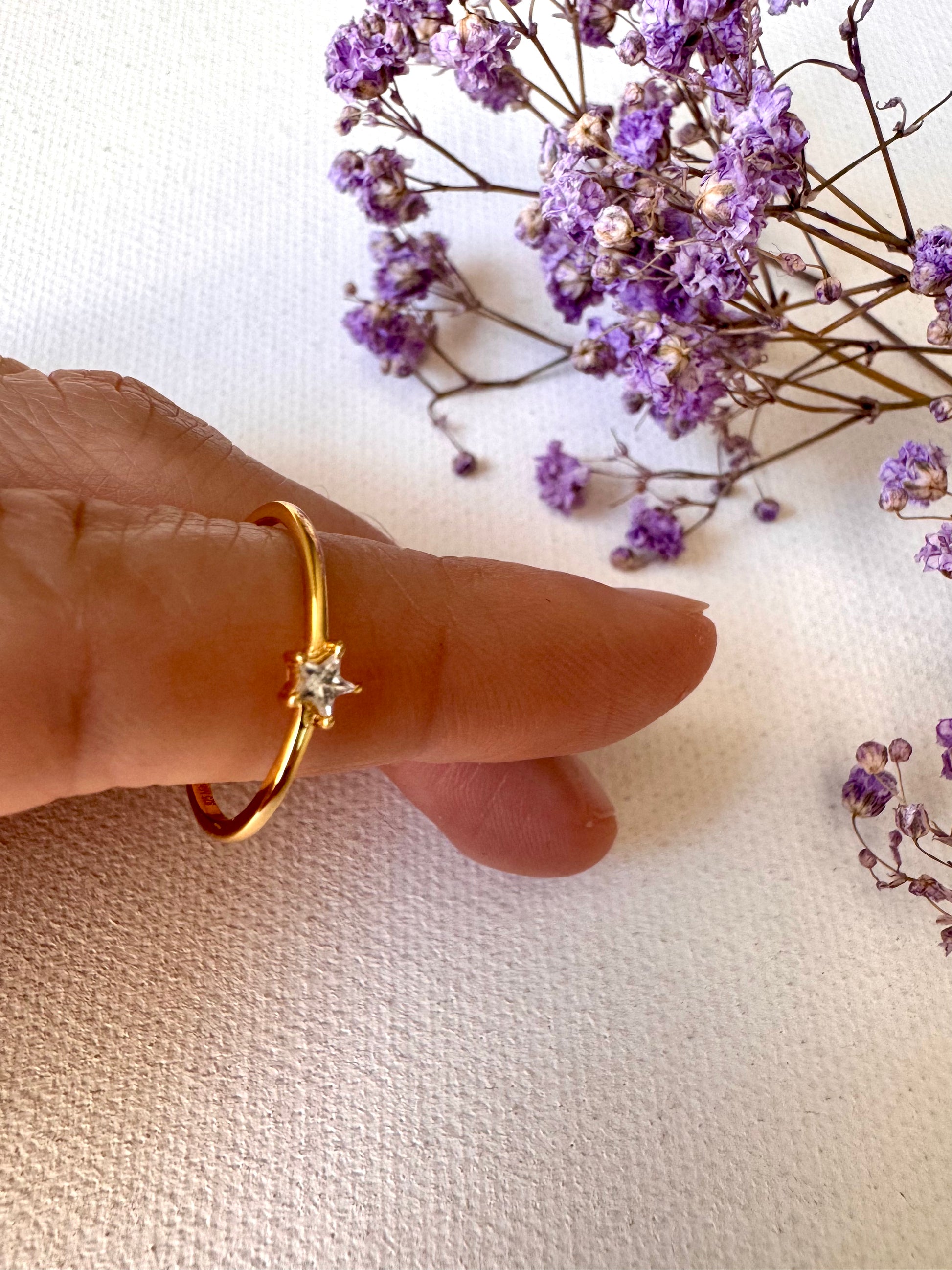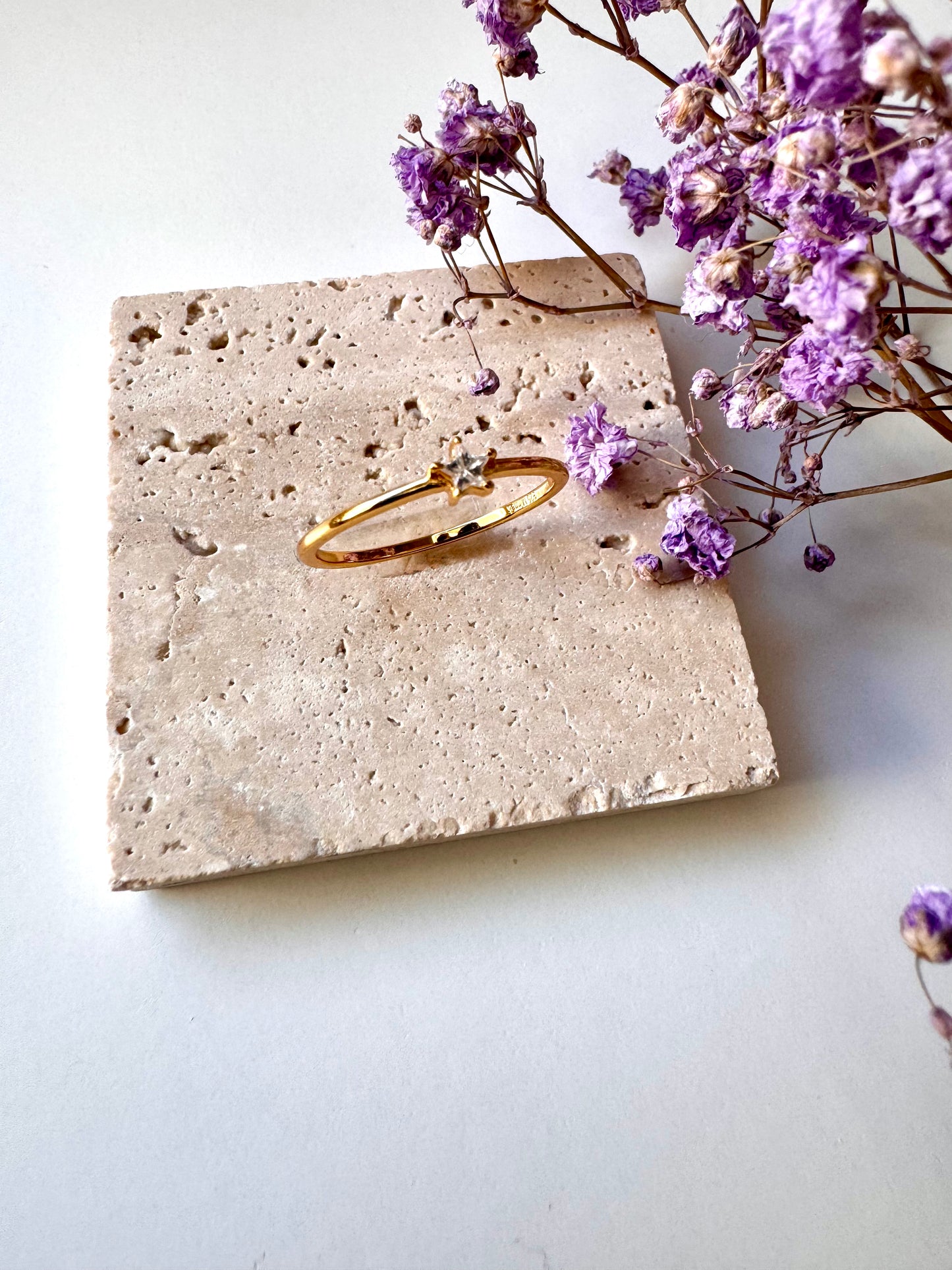 Zarter Ring mit Sternfassung • 925 Silber 18k vergoldet